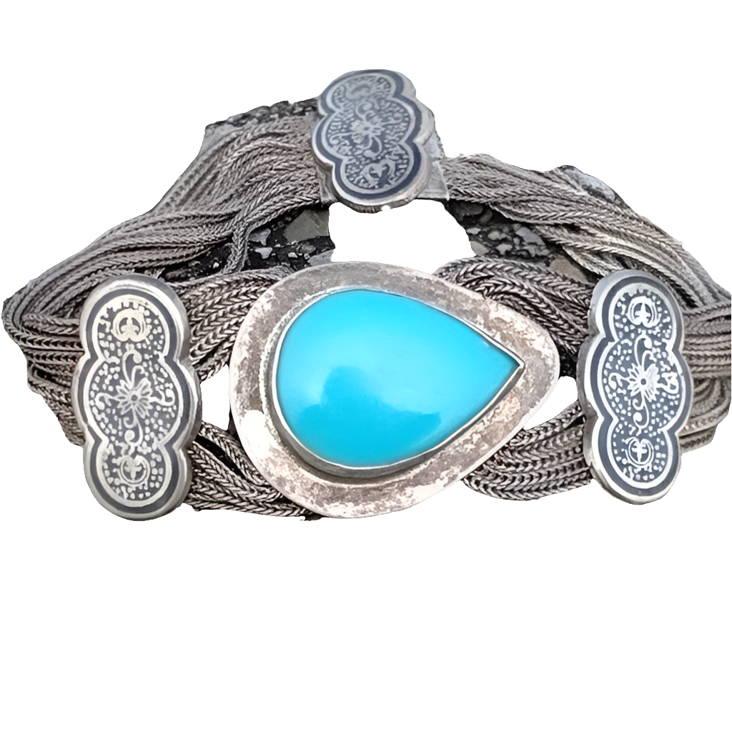 you are getting an antique turquoise 925 sterling silver and 900 silver 8-in bracelet