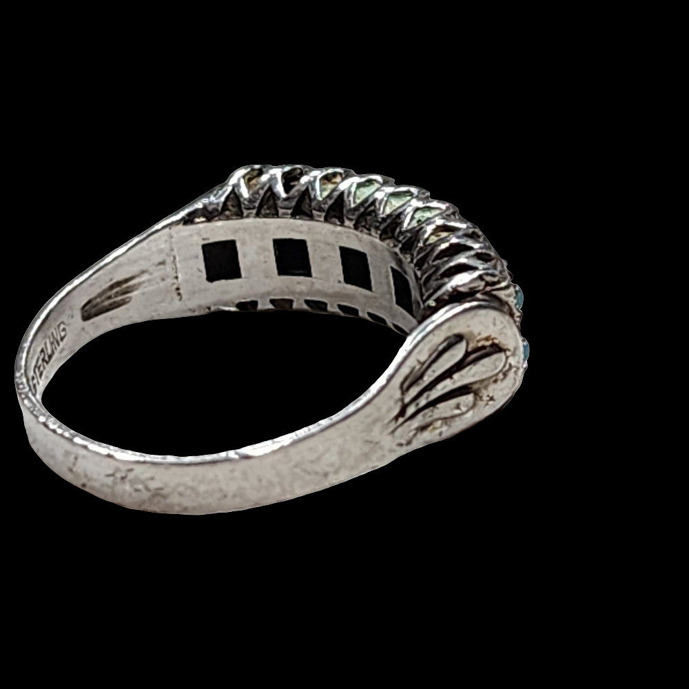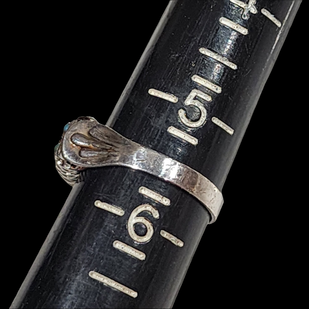 you are getting a nice sterling silver Art Deco petite ring with turquoise and Marcasite size 5.5. if you have questions just ask I test and guarantee you on my jewelry to be sterling silver I do not sell any fake marked items