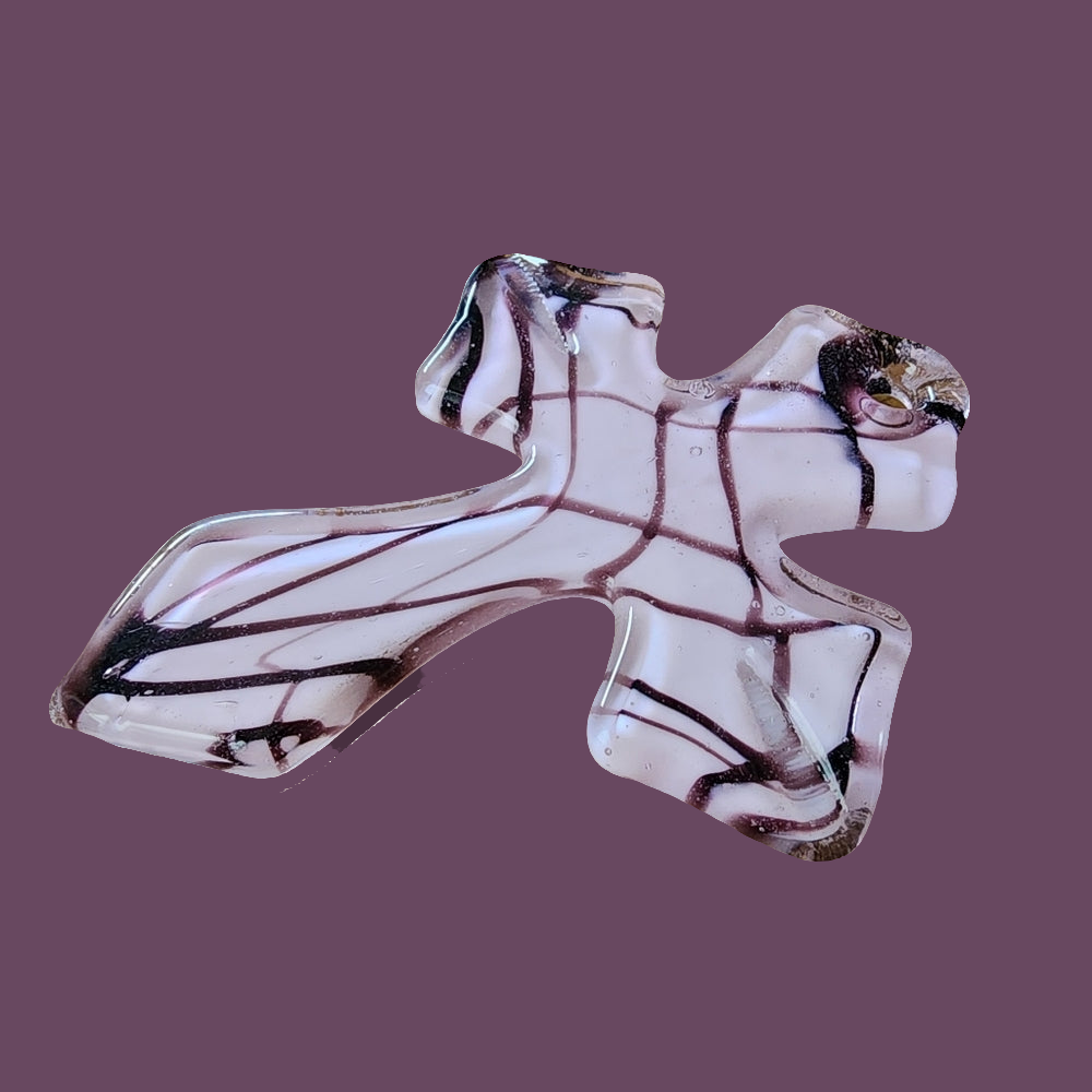 Art glass huge chunky cross pink purple fashion statement pendant jewelry
