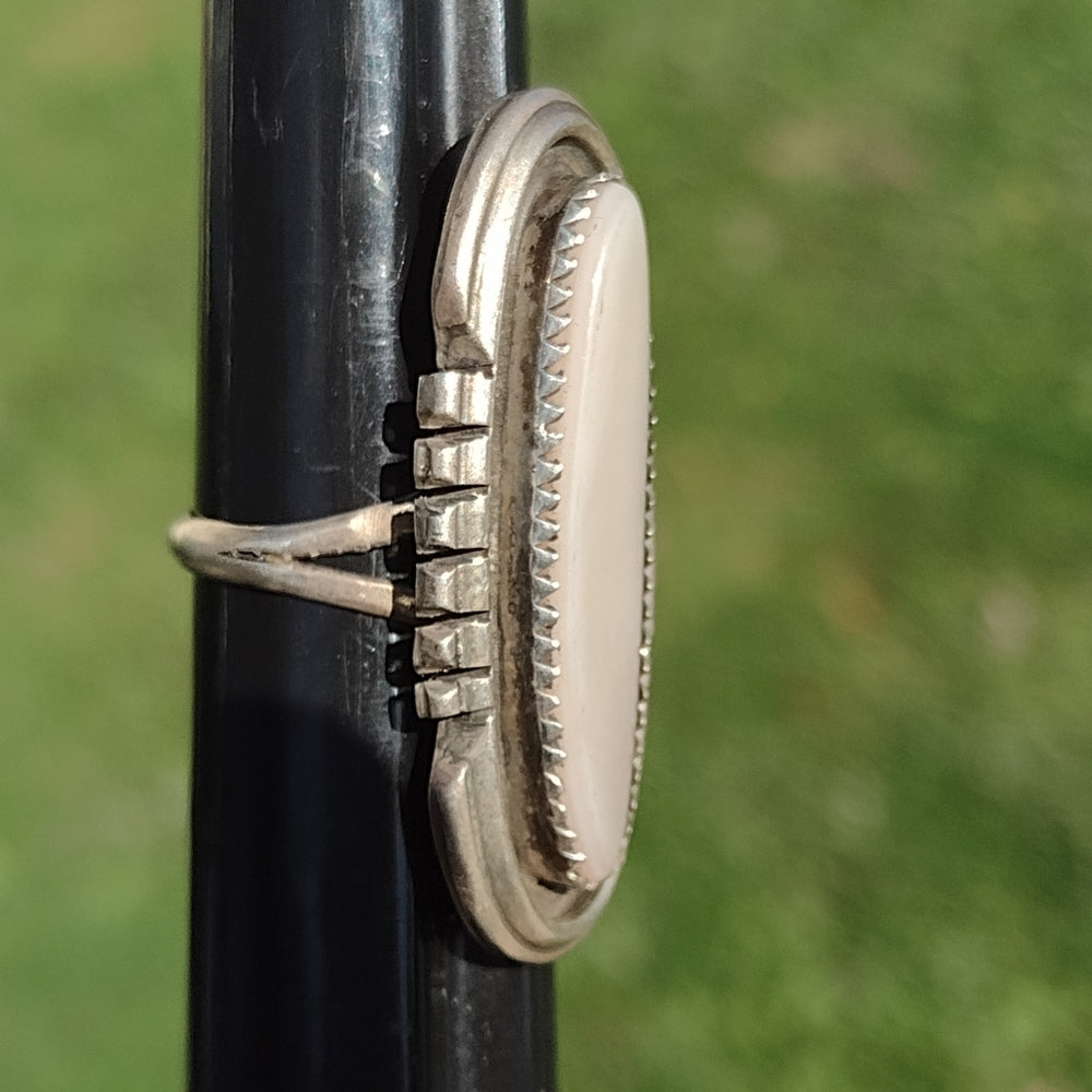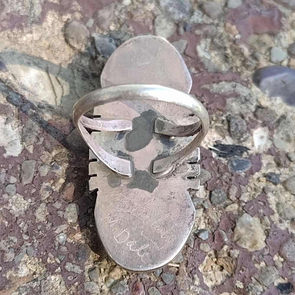 Handmade artist sign sterling silver native American mother of pearl ring signed M. Dale tested and guaranteed to be silver