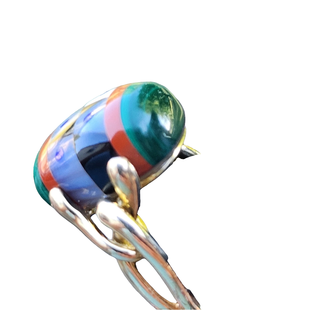 Asch Grossbardt 14k yellow gold Inlay ring size 7 lapis coral onyx Malachite