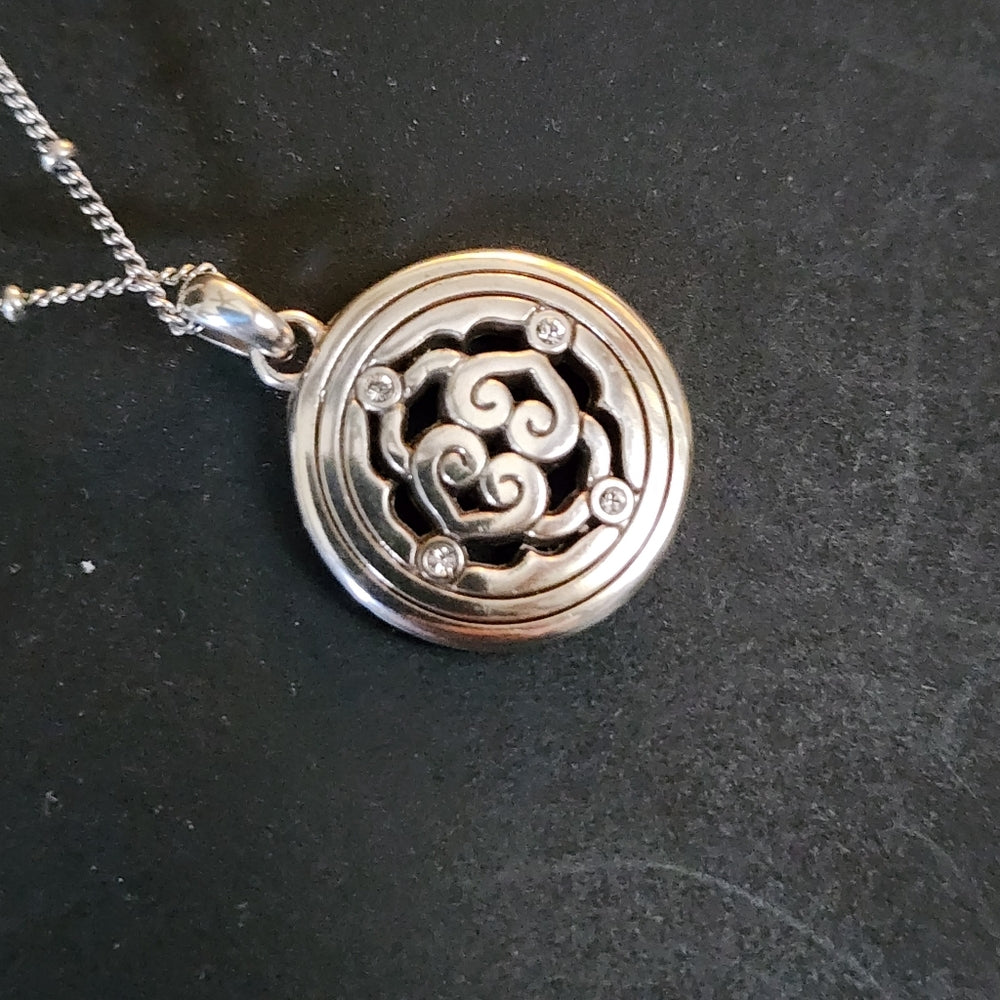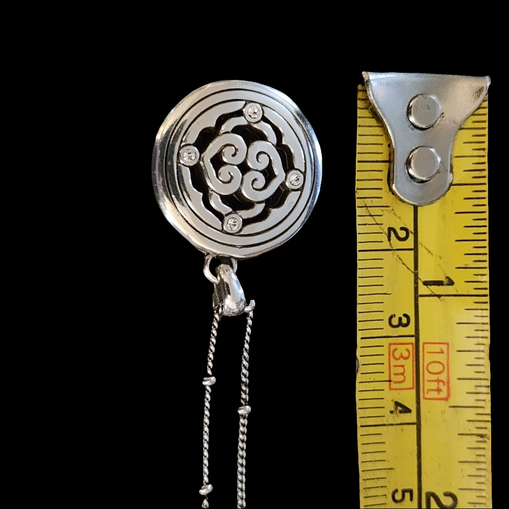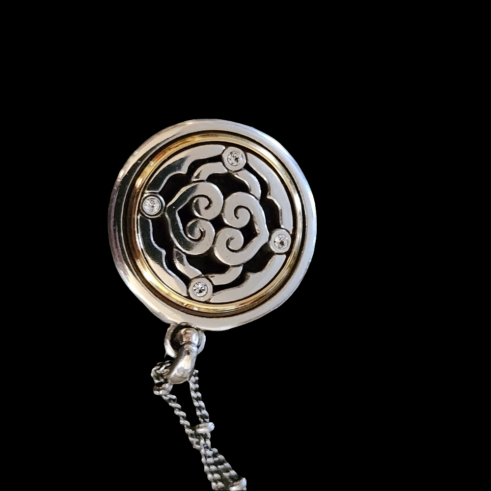 Brighton reversible Inteigue rhinestone necklace & pendant silver gold tone NWT