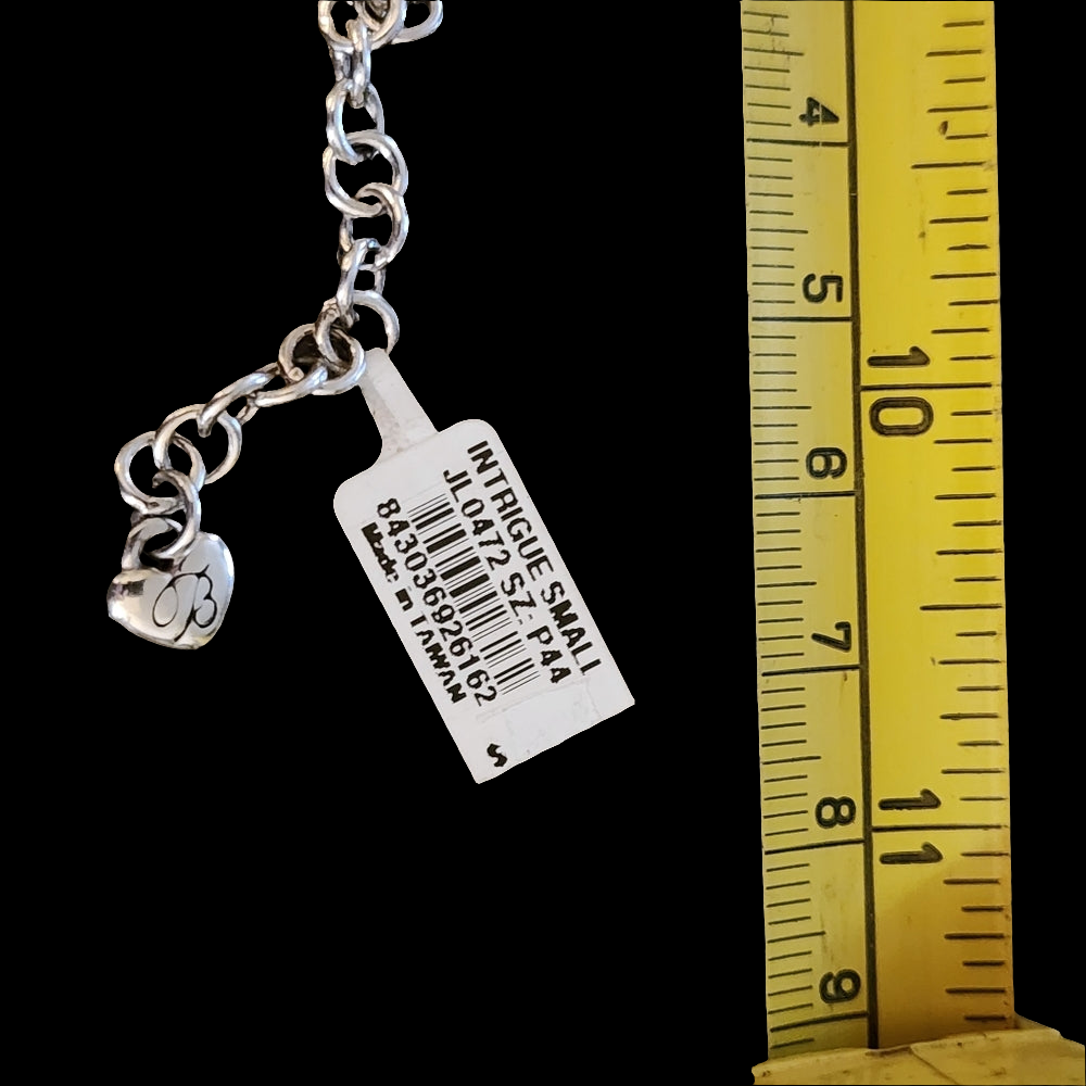 The Brighton Reversible Inteigue Rhinestone Necklace & Pendant offers versatile style with its silver and gold tones. The intricate pendant is adorned with sparkling rhinestones, adding a touch of elegance to any outfit. With the option to reverse the pendant, you can easily switch up your look for any occasion. New with tags, this necklace is the perfect addition to your jewelry collection.boxF