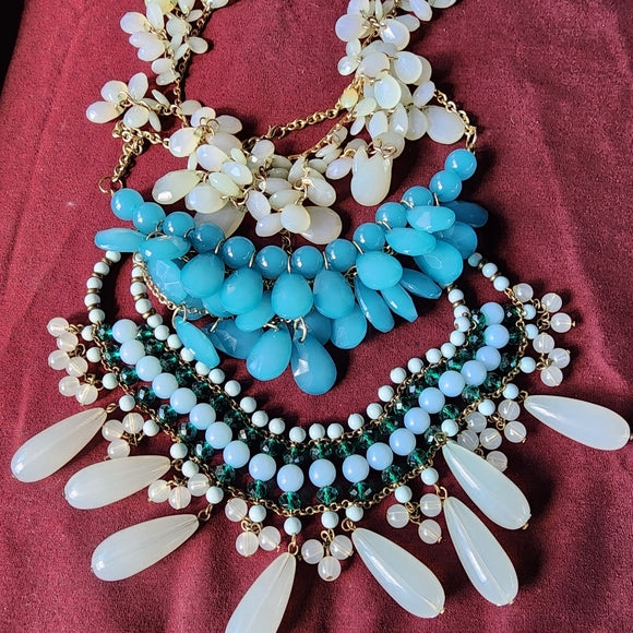 Bundle lot 3 bib tear drop dangle Necklaces blue green fashion costume jewelry