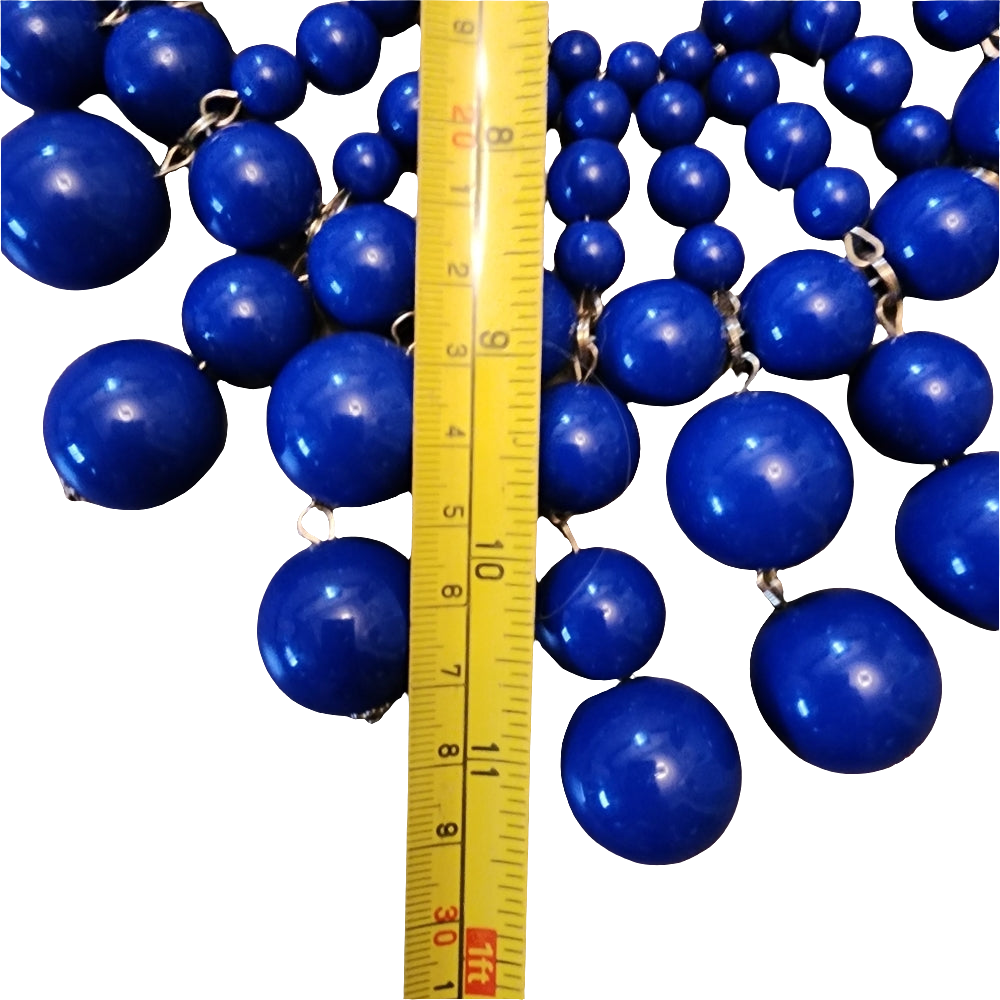 Make a statement with the Charming Charlie navy blue bubble beaded bib necklace. This beautiful piece features a chunky bib design, adding a touch of boldness to any outfit. Crafted with intricate bubble bead detailing, it's the perfect addition to your jewelry collection. Elevate your style with this stunning, runway-inspired accessory.You're getting the necklace you see in the photos boxGX