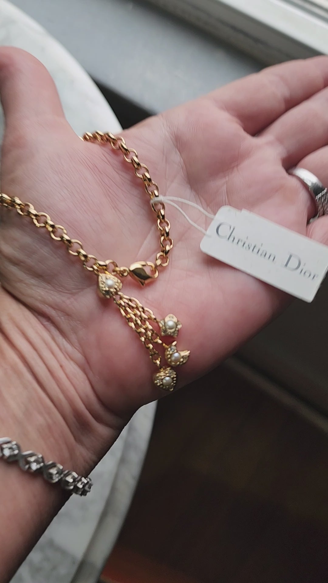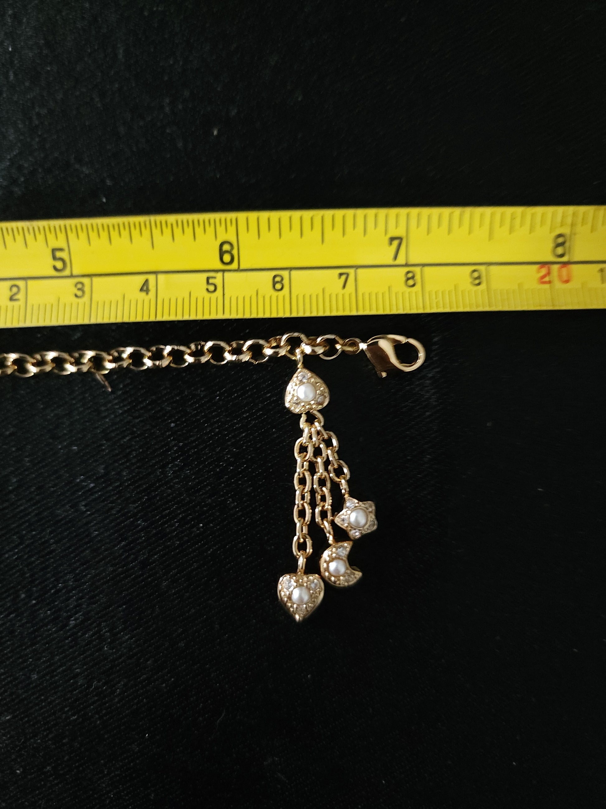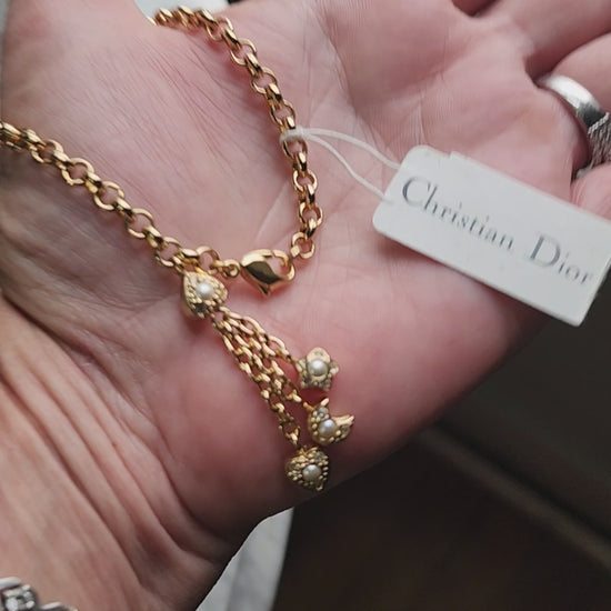 Christian Dior gold tone bracelet with dangling charms heart star moon