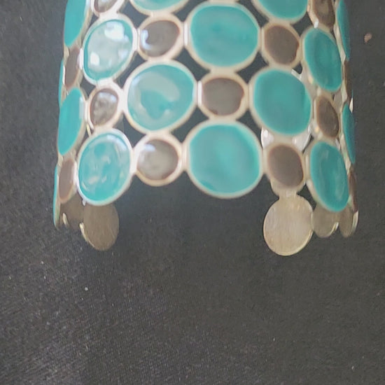 Chunky Blue & Black Enamel cuff Bracelet retro Mid-century style