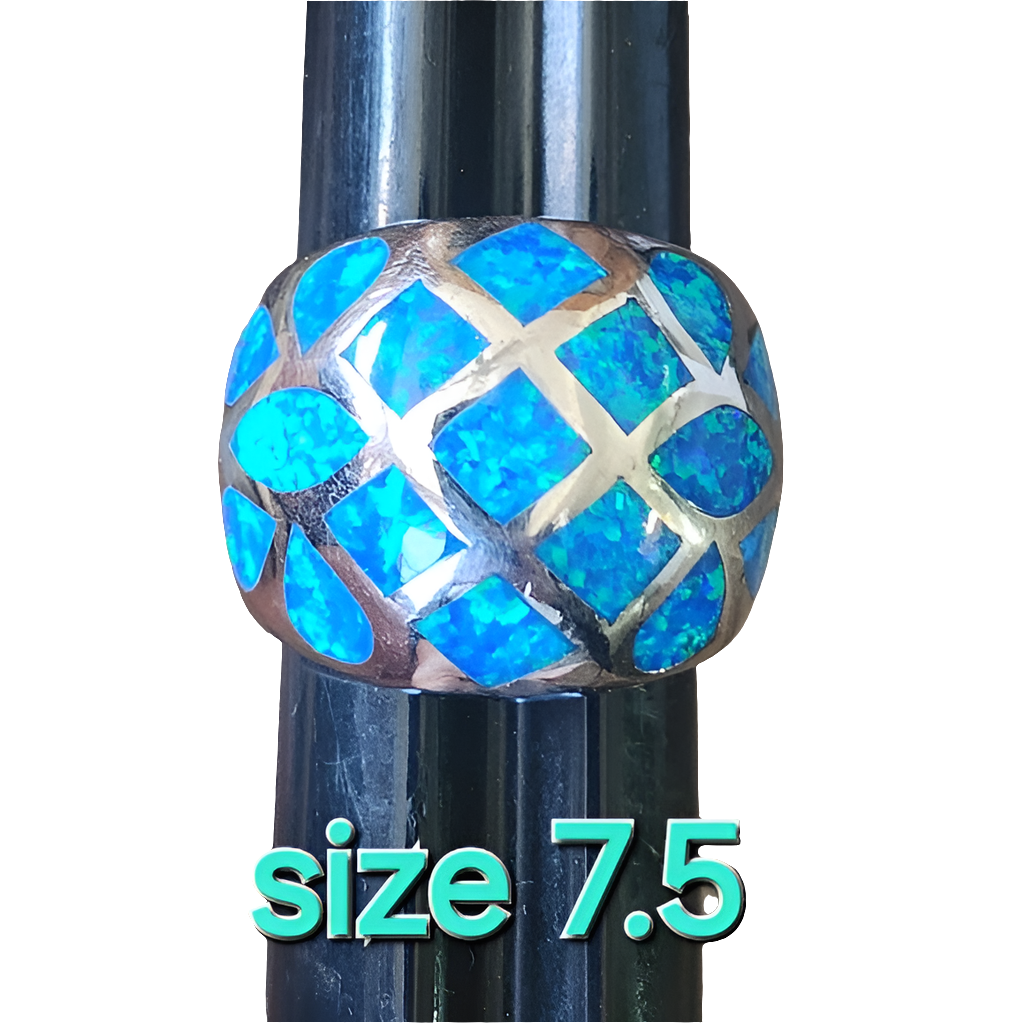 Dome top blue fire opal Sterling Silver ring g size 7.5 fine Jewelry