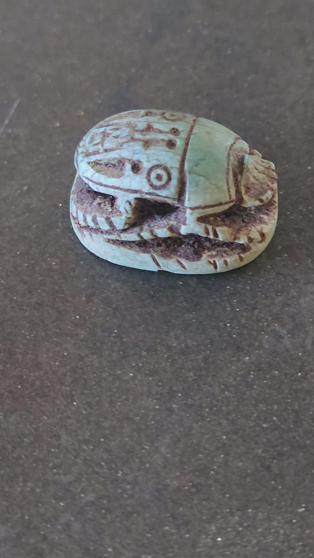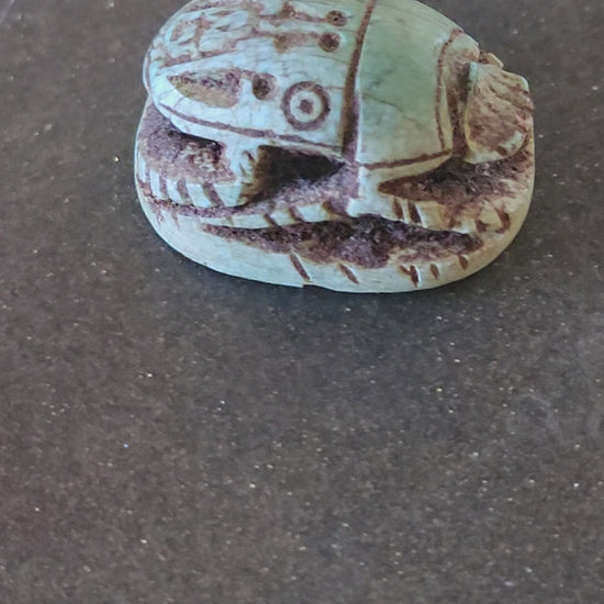 Egyptian Scarab Blue carved Amulet with hieroglyphics
