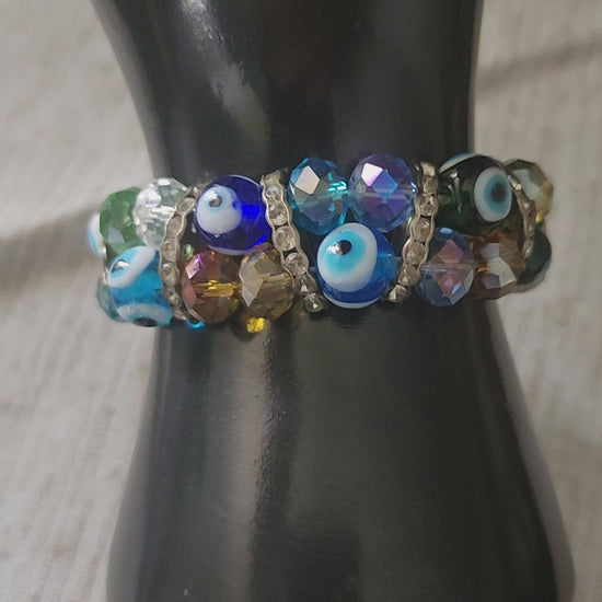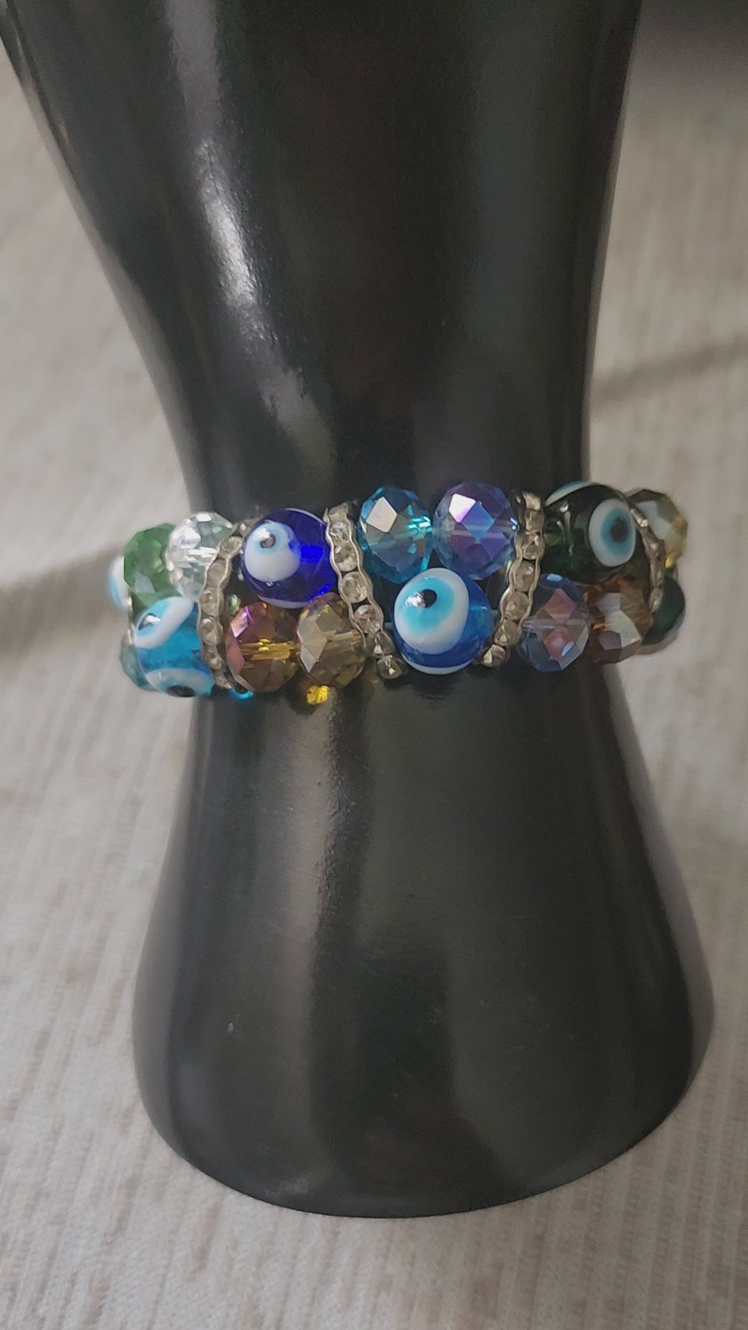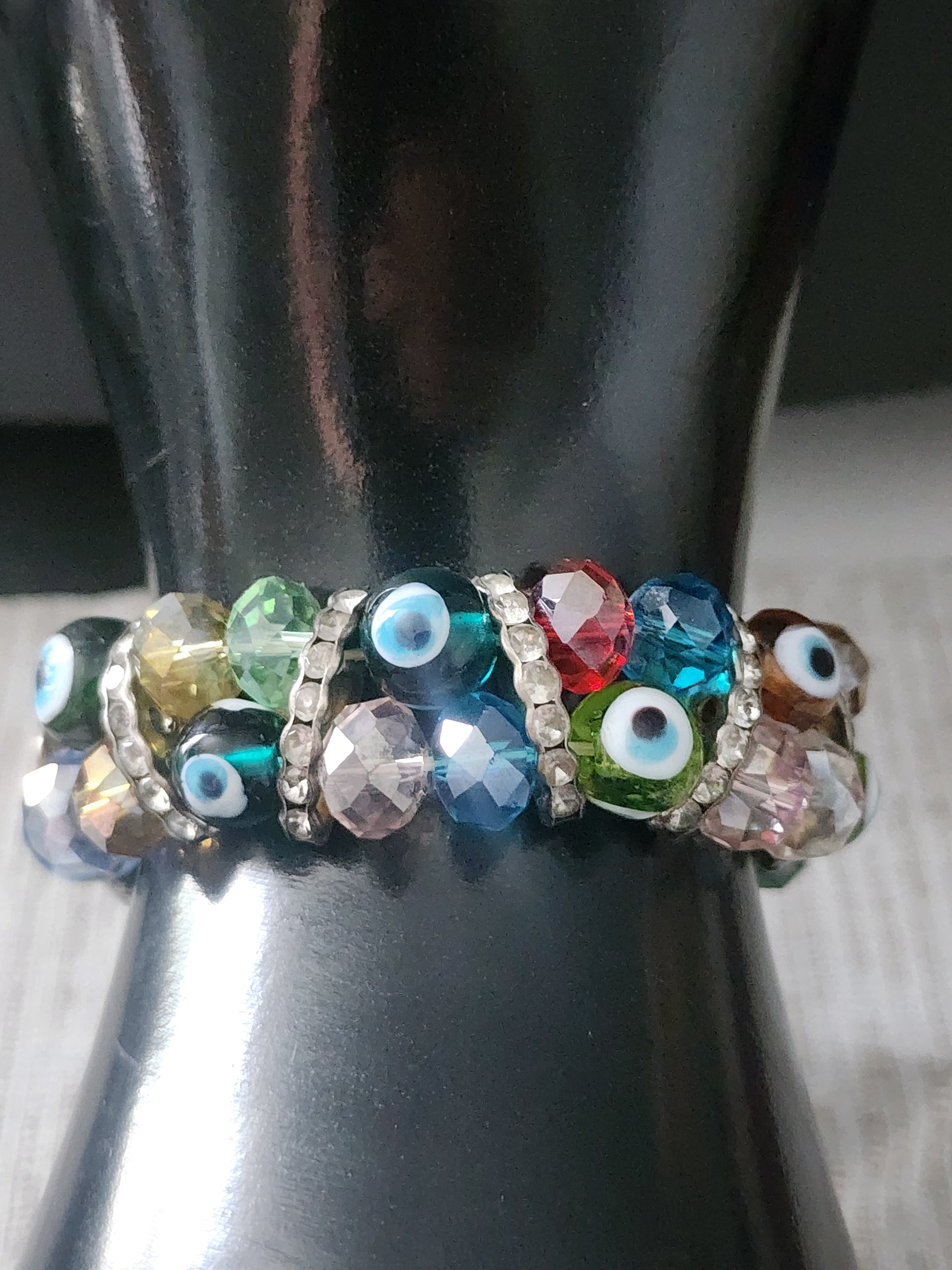 Ward off negative vibes with this eye-catching (pun intended) evil eye art glass stretch bracelet. The vibrant colors and playful design will keep you protected while adding some personality to your outfit. No need for superstitious beliefs, just cool style.