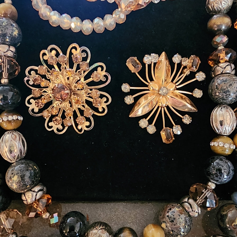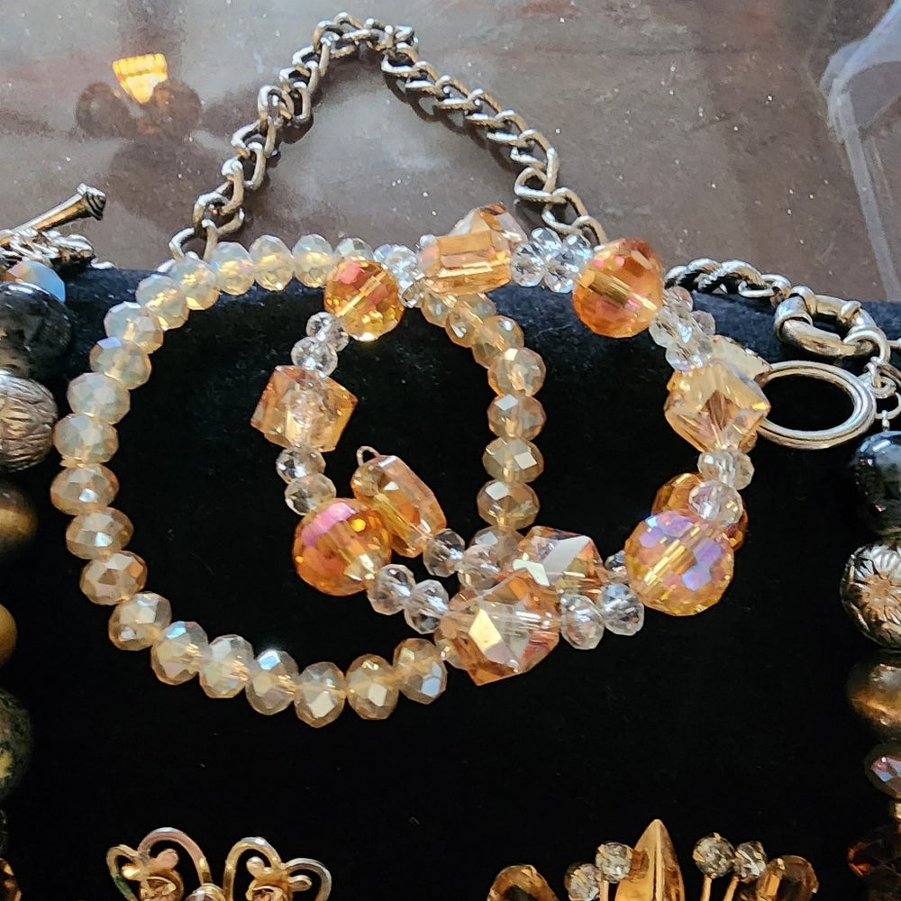 Fashion costume jewelry art glass Aurora, borealis beads brooches necklace lot