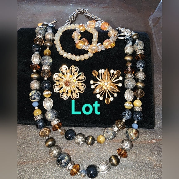 You are getting all the costume jewelry.You see 2 brooches 2 glass bracelet's one quality necklace.