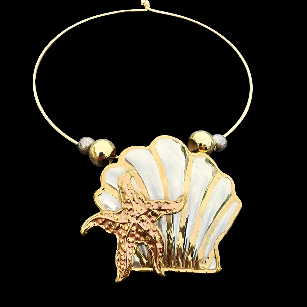 Handmade mixed metals star fish shell pendant pin coker necklace jewelry