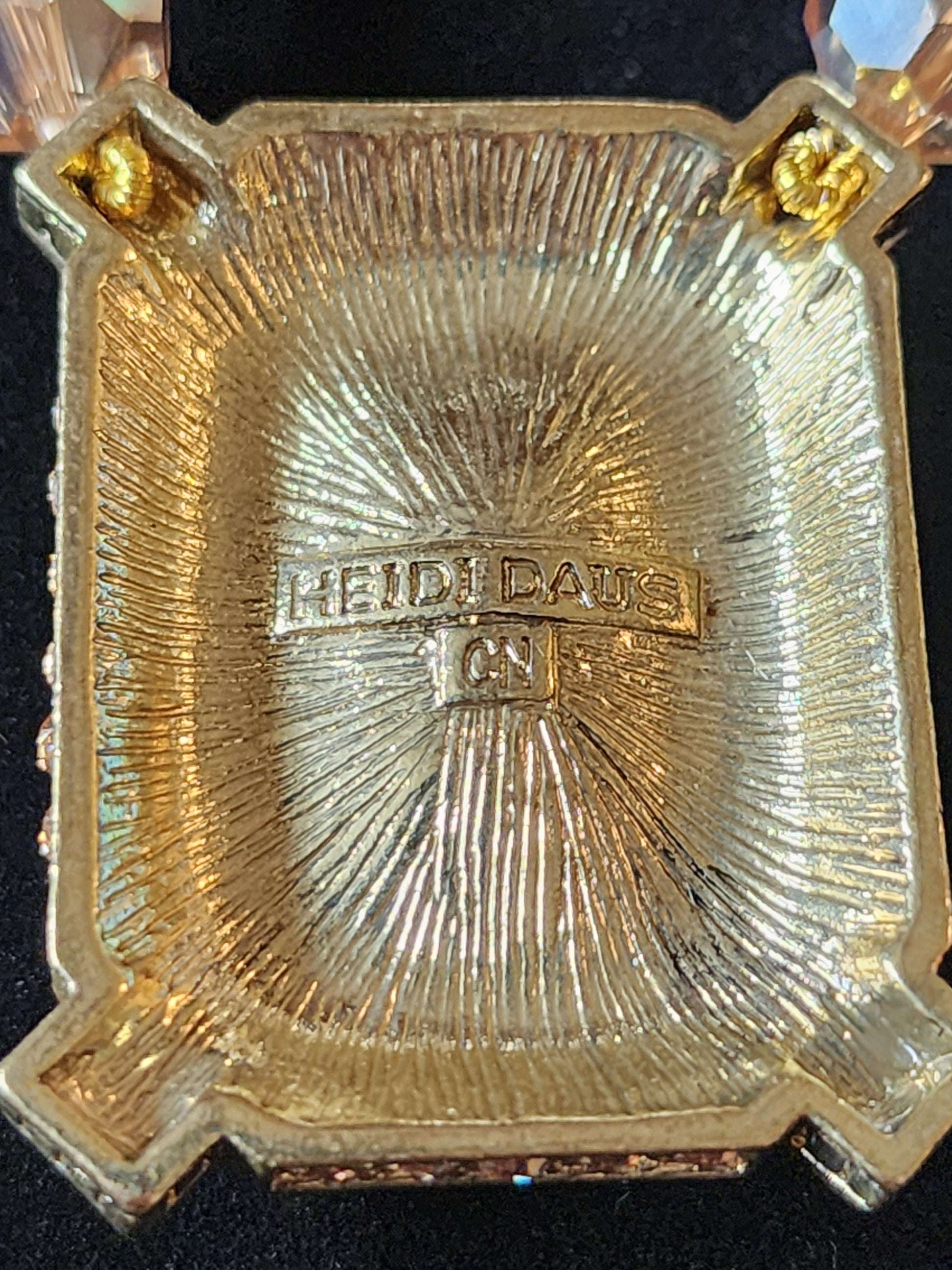 Elevate your style with the Heidi Daus golden crystals three strand necklace and clip on earrings set. Made with stunning golden crystals, this set exudes elegance and charm. Perfect for any occasion, this set is a must-have for any fashion-forward individual. designer set. Necklace adjustable length 16.5"-21" earrings 1.1"