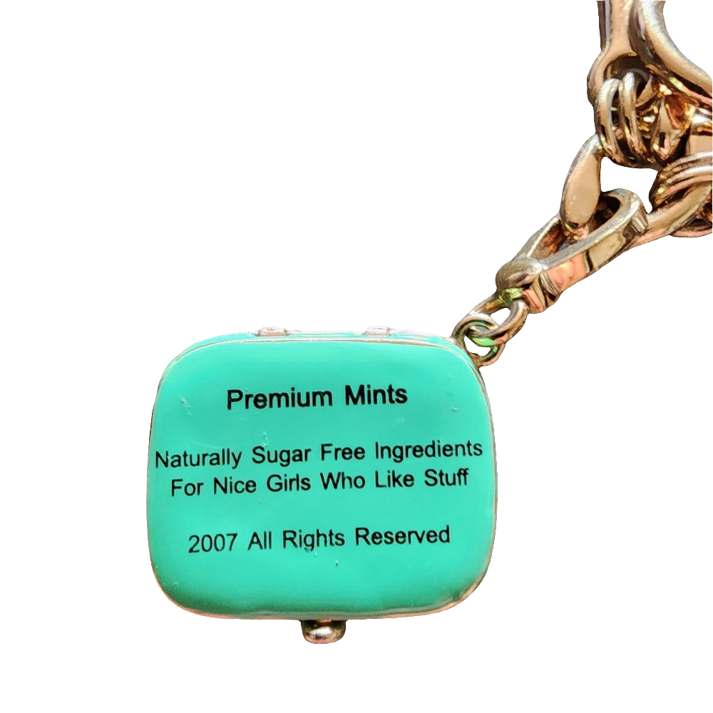Juicy Couture gold tone charm bracelet green locket purse charm w rhines…