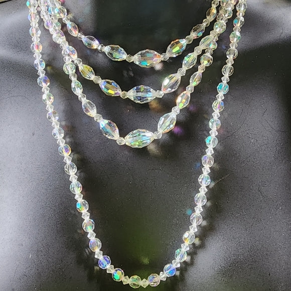 Lot of two Aurora Borealis glass bead necklaces three strand & 1 strand