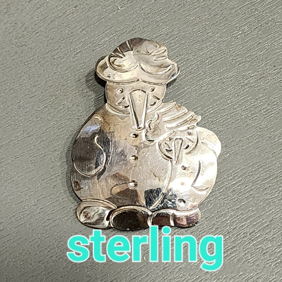 Mexico sterling silver snowman with baby Frosty brooch pendant pin
