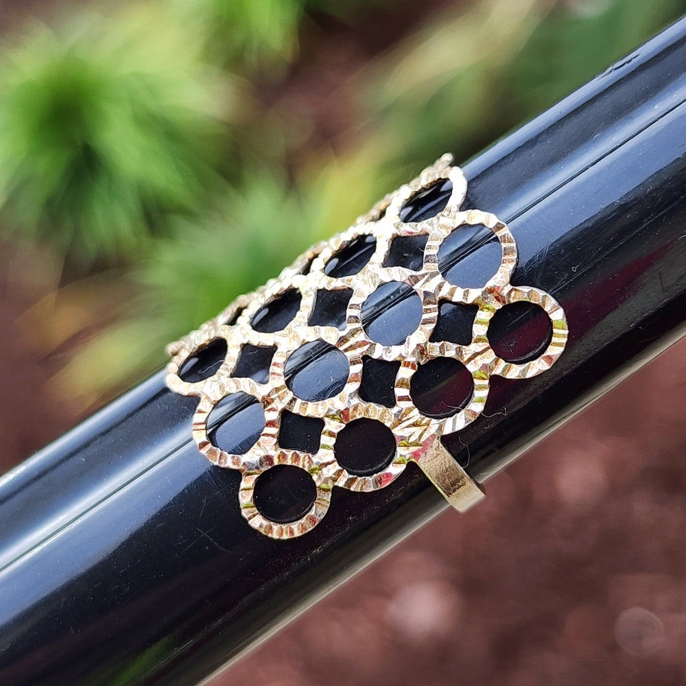 Indulge in the timeless luxury of our Mid-century modern abstract sterling silver ring. Crafted with premium quality sterling silver, this ring will add a touch of elegance and sophistication to your style. Its unique and abstract design makes it a true piece of art, perfect for the modern and refined fashion enthusiast. Available in size 10.5.