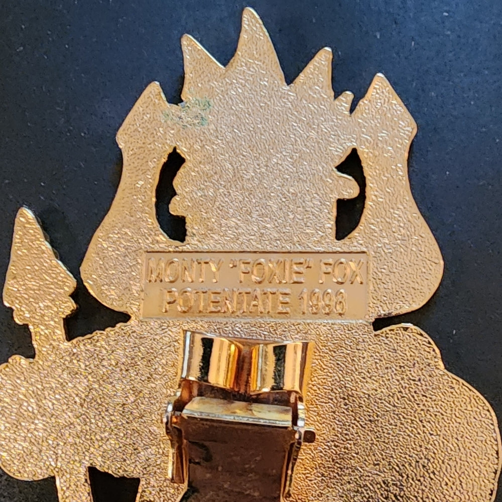 you're getting the Shriners enameled bowler clip from Phoenix Arizona says Monty foxy Fox potentate 1998 rig Awards Fresno California measurements in the photos