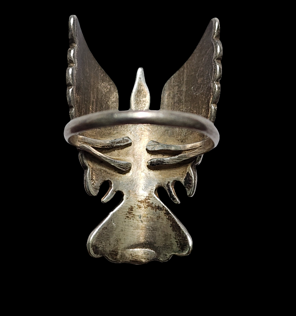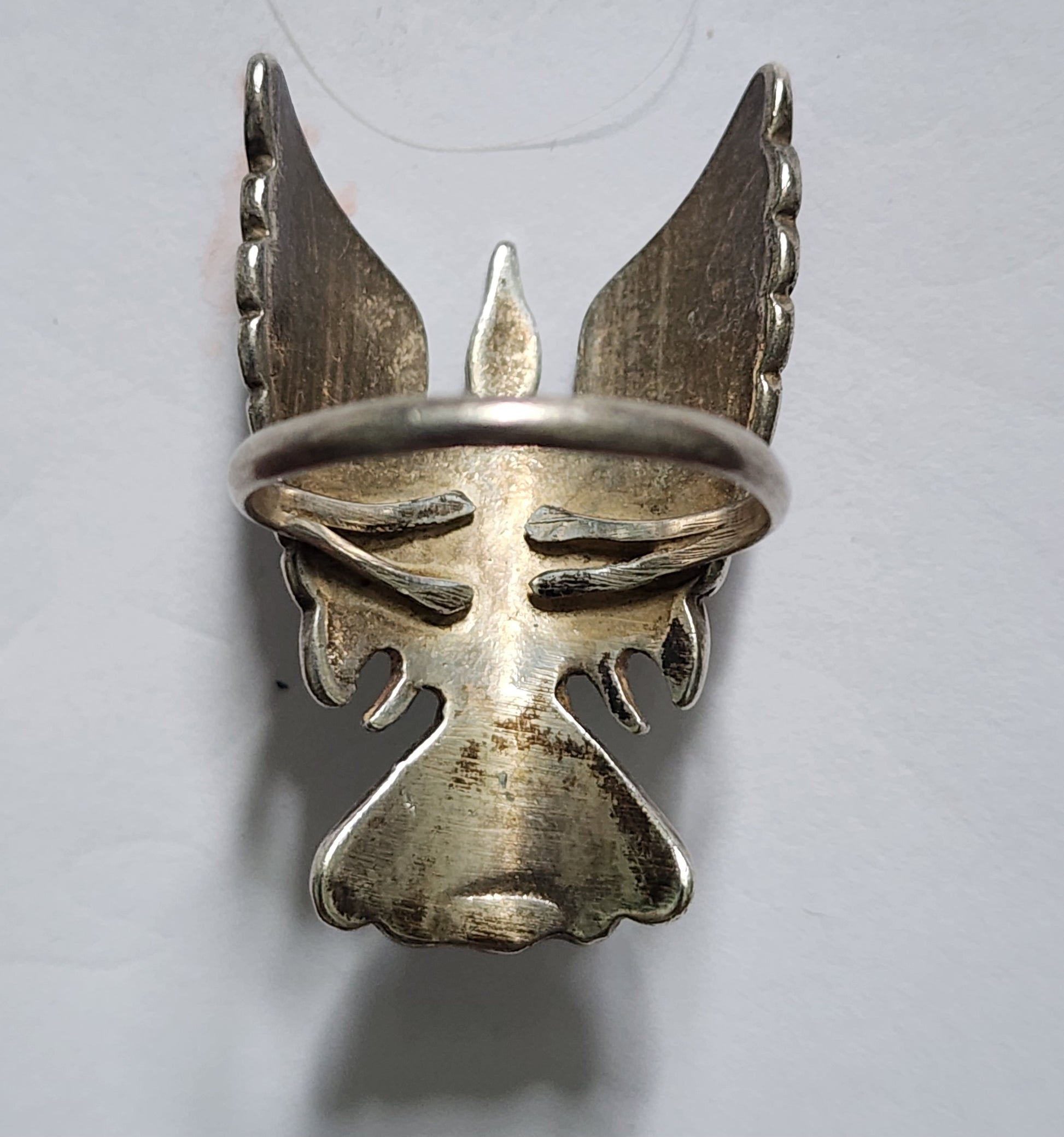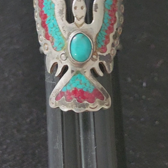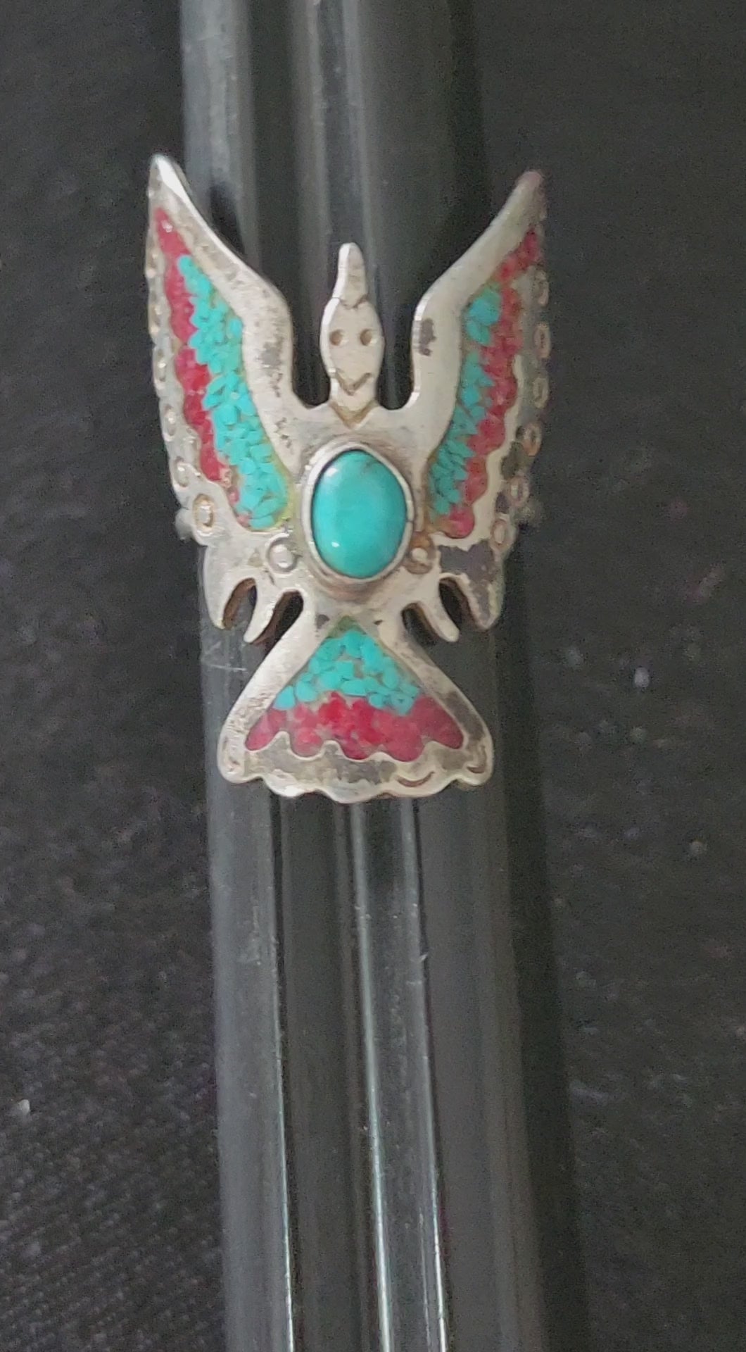 Native american sterling silver thunderbird ring size 7.75 Turquoise And coral