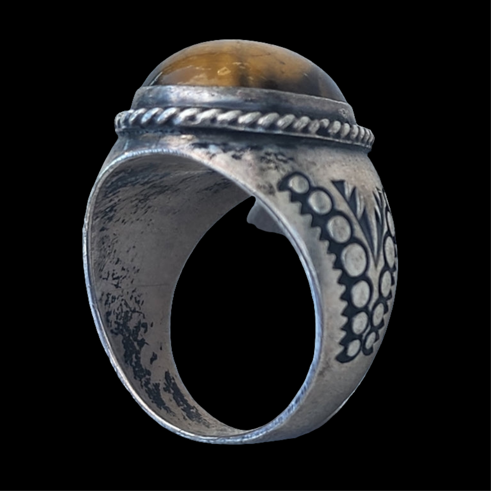 Discover the unique charm of this signed GCOI Mexican Mexico sterling silver tiger's eye ring. Size 11 Crafted with high-quality materials, this vintage ring features a bold tiger's eye stone and is sized to fit perfectly. Make a statement with this one-of-a-kind piece!you are getting a quality Mexican silver ring artist signed it looks like GCOI OR GCOL it has a circle with a flower boxZA