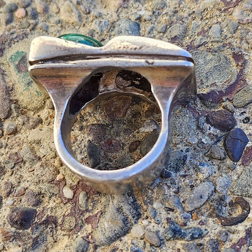 Size 8 Vintage sterling silver chunky modernist ring with malachite jewelry
