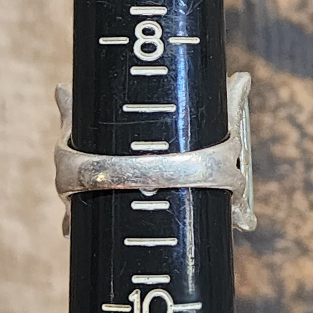 This statement sterling silver chunky ring features a light green multifaceted stone that adds a touch of elegance to any outfit. Crafted with expertise, this ring is the perfect addition to your jewelry collection. Size 9.Vintage nice quality, Sterling silver Chunky ring.I am not familiar with the artist.Please see photos.size 9