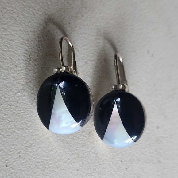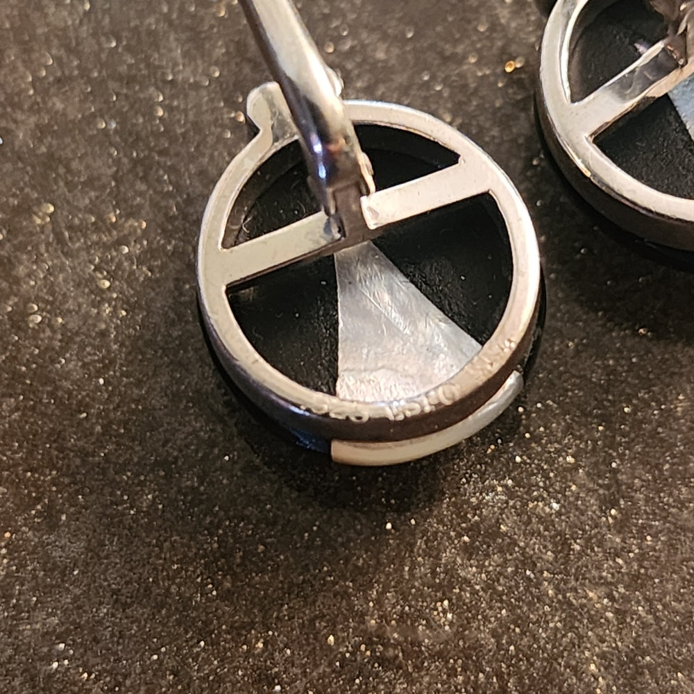 Sterling Silver Black Onyx & Mother Of Pearl post Earrings Espo Sig jewelry