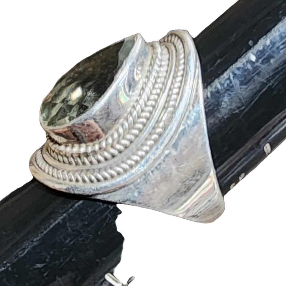 Sterling silver chunky tear drop ring with green stone size 7.25