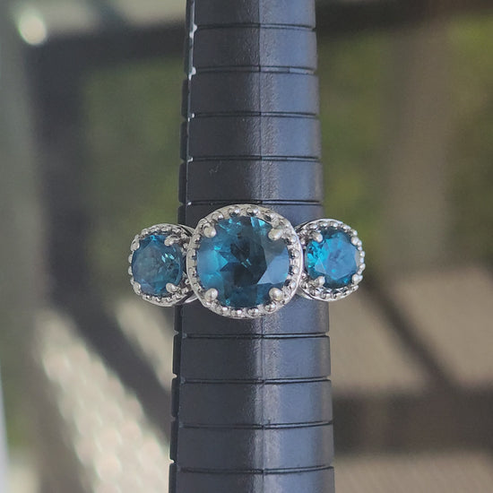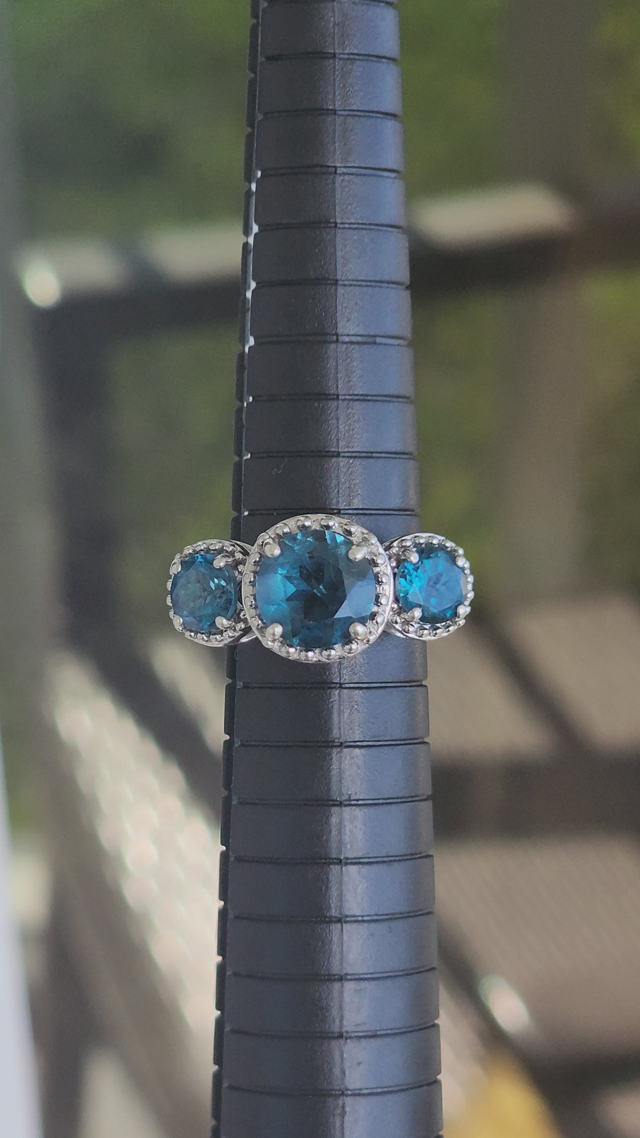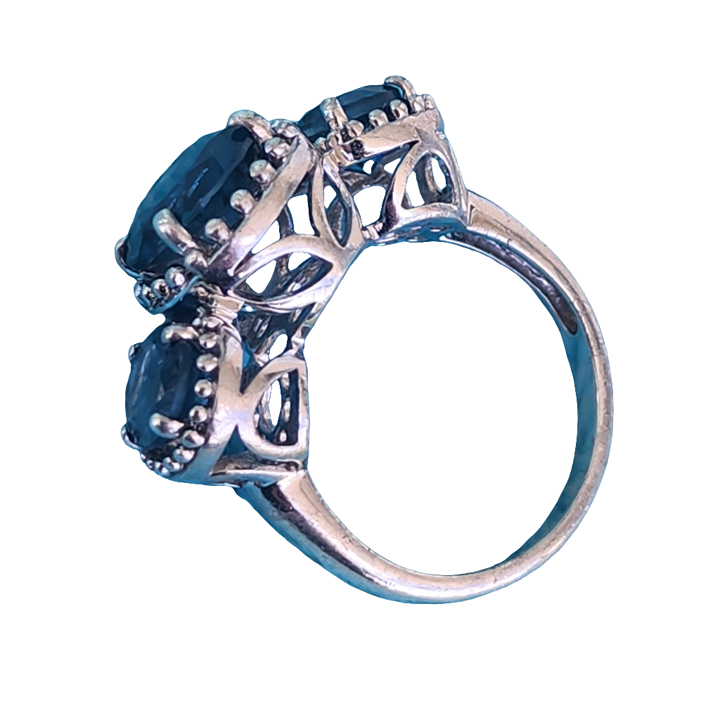 you're getting a Sterling Silver Ring Size 6.75 by RSI. Trinity London blue topaz. Im not a gemologist so I don't know if it's natural or man made and i Normally dont call stones out ,unless its in the company's description.We Do NOT clean any jewelry. We Don't sell any fake Marked or sterling plated jewelry.We test and guarantee everything so you don't have to worry about your investment!