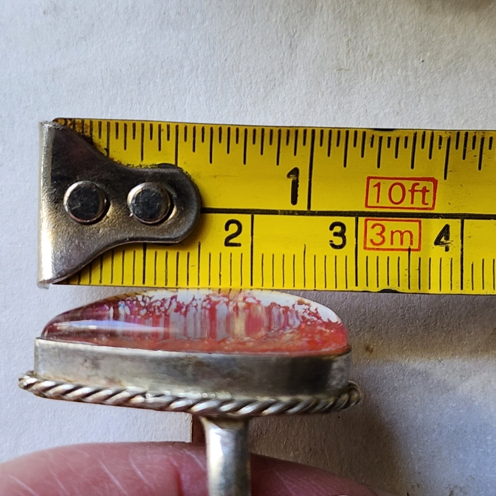 This stunning sterling silver dragon's breath ring, size 8.5, features a mesmerizing pink hue. With its intricate design and eye-catching color, it makes a bold and elegant statement piece. Crafted from quality materials, it is both stylish and durable.