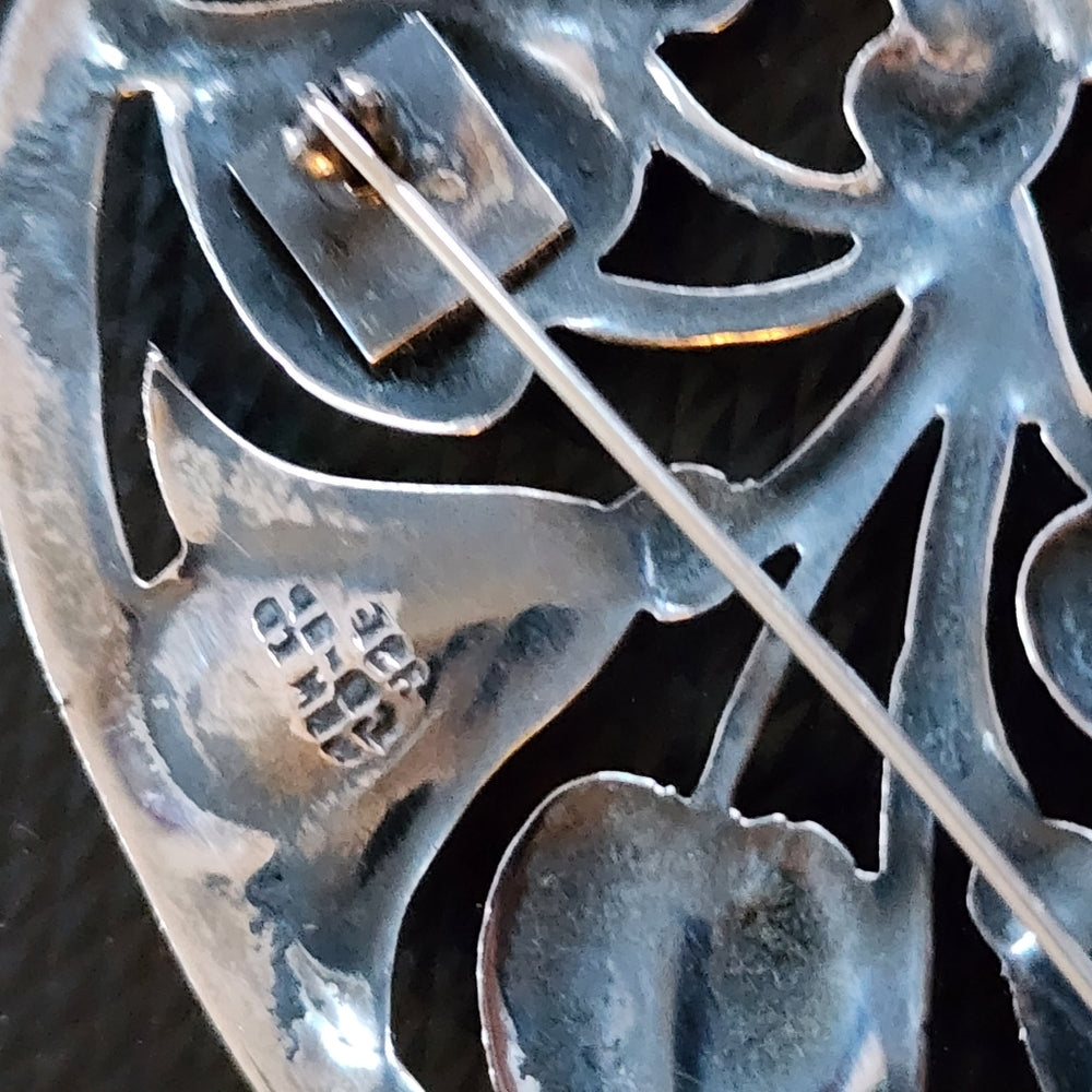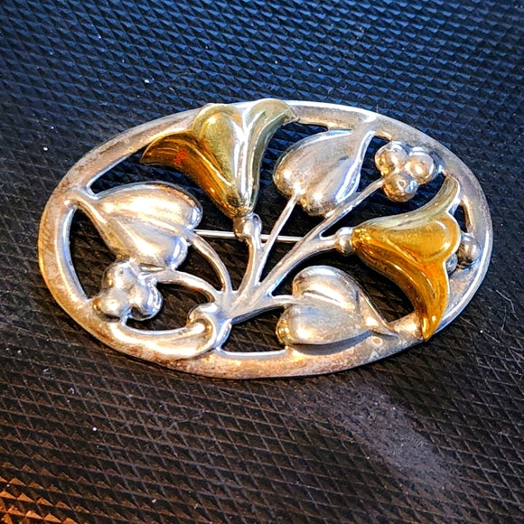 Sterling silver Gold accents vintage Mexico brooch scarf pin flowers