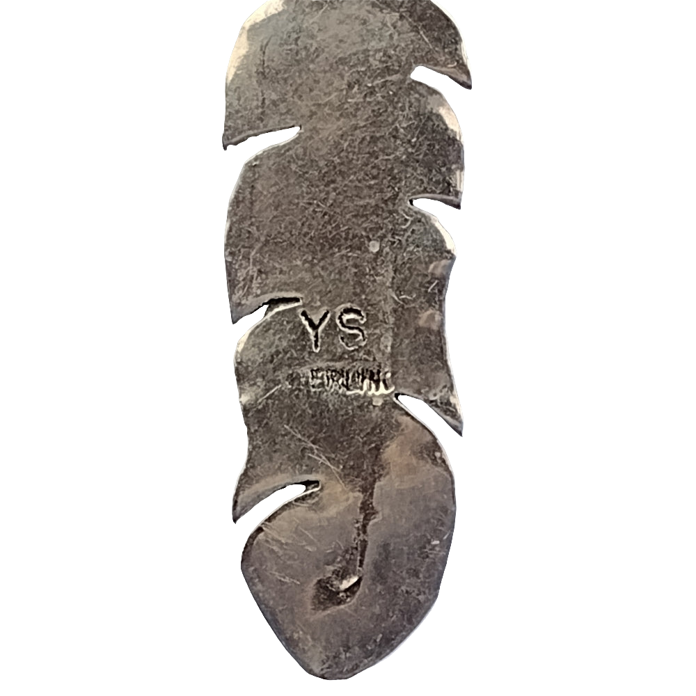 Crafted with genuine sterling silver, this Native American inlay feather dangle necklace is a stunning addition to any jewelry collection. The intricate turquoise detailing adds a touch of color and elegance, making it a versatile accessory for any outfit. Elevate your style with this expertly crafted piece.