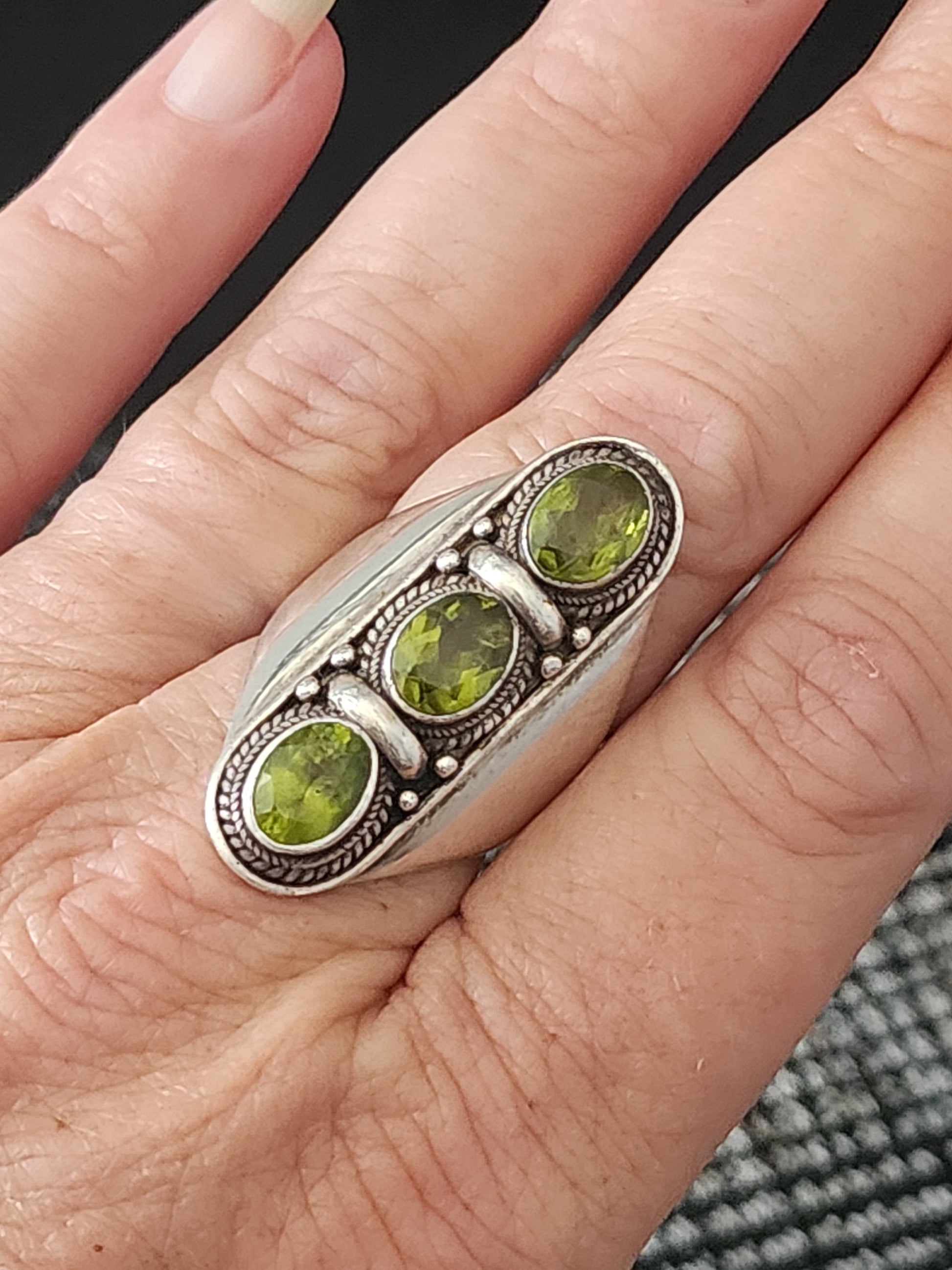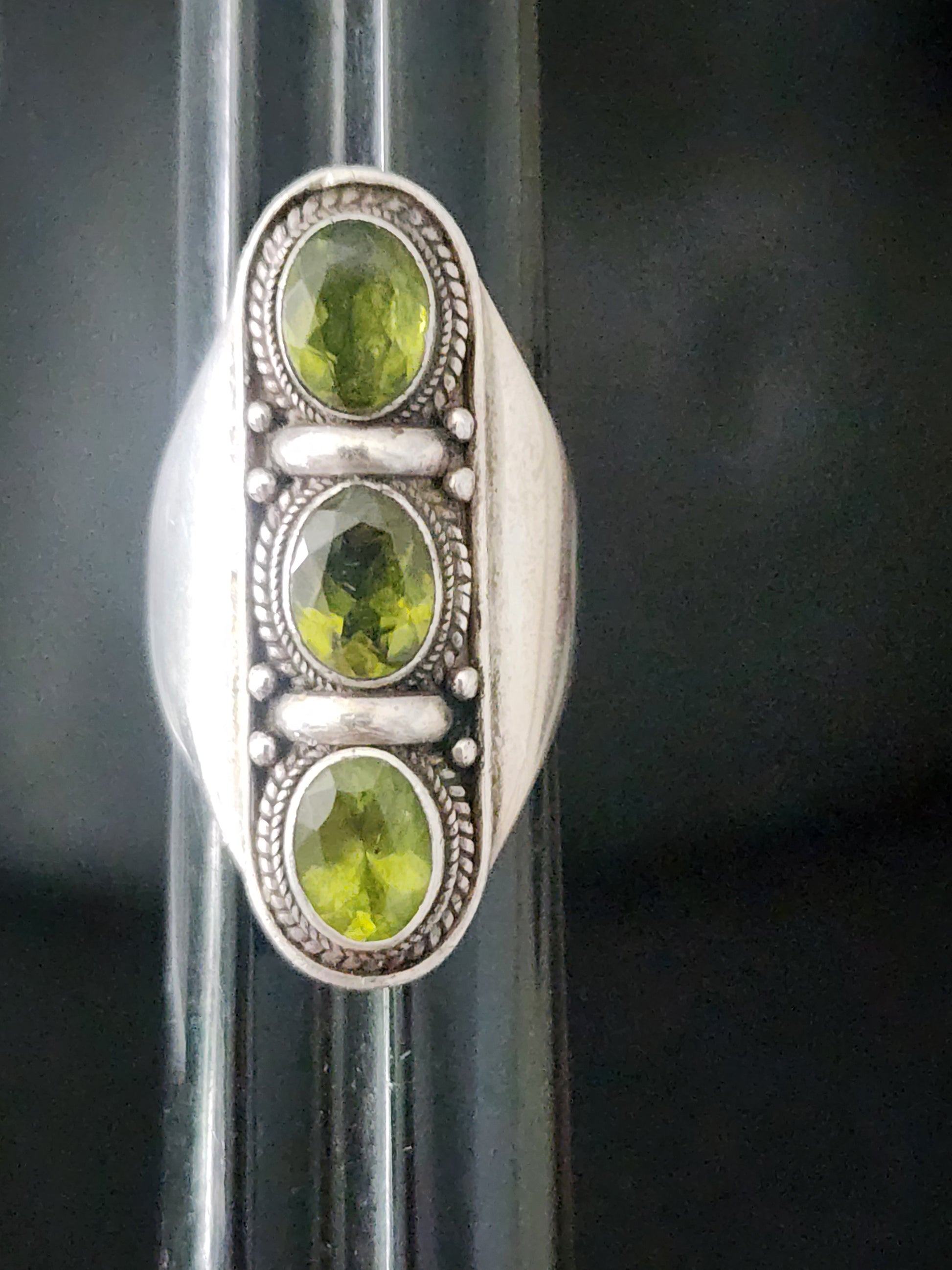 this sterling silver ring features a stunning peridot gemstone in size 8. With its timeless design and high-quality materials, this ring is a valuable addition to any jewelry collection. The peridot gemstone is known for its vibrant green color, making this ring a beautiful and unique piece that will stand out.