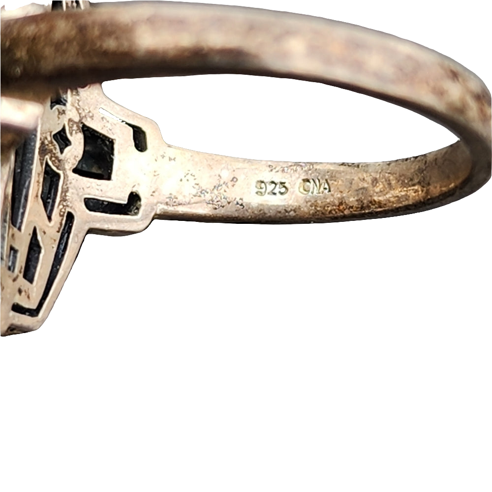 Sterling Silver purple Amethyst black enamel ring size 7.75 unisex fine Jewelry
