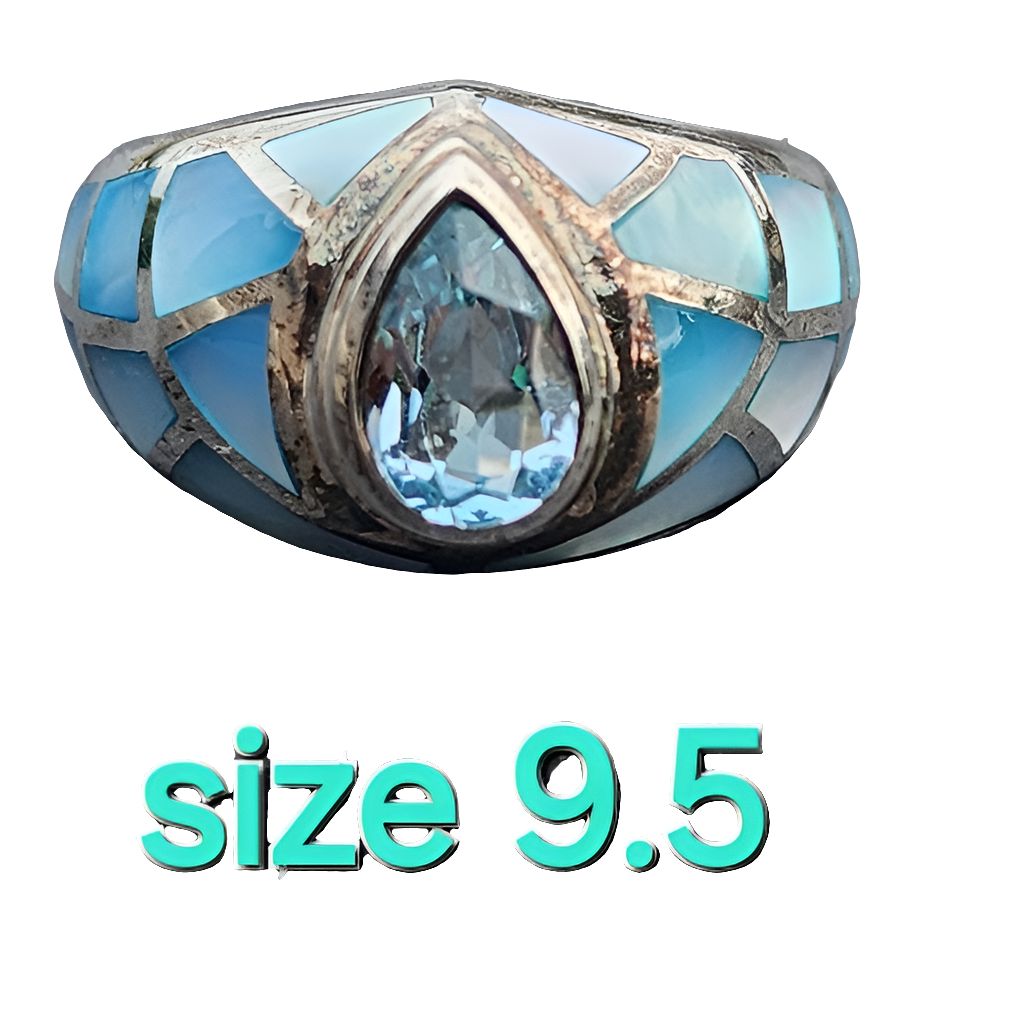 Sterling silver ring Chunky ring blue topaz & mother of pearl size 9.5 jewelry