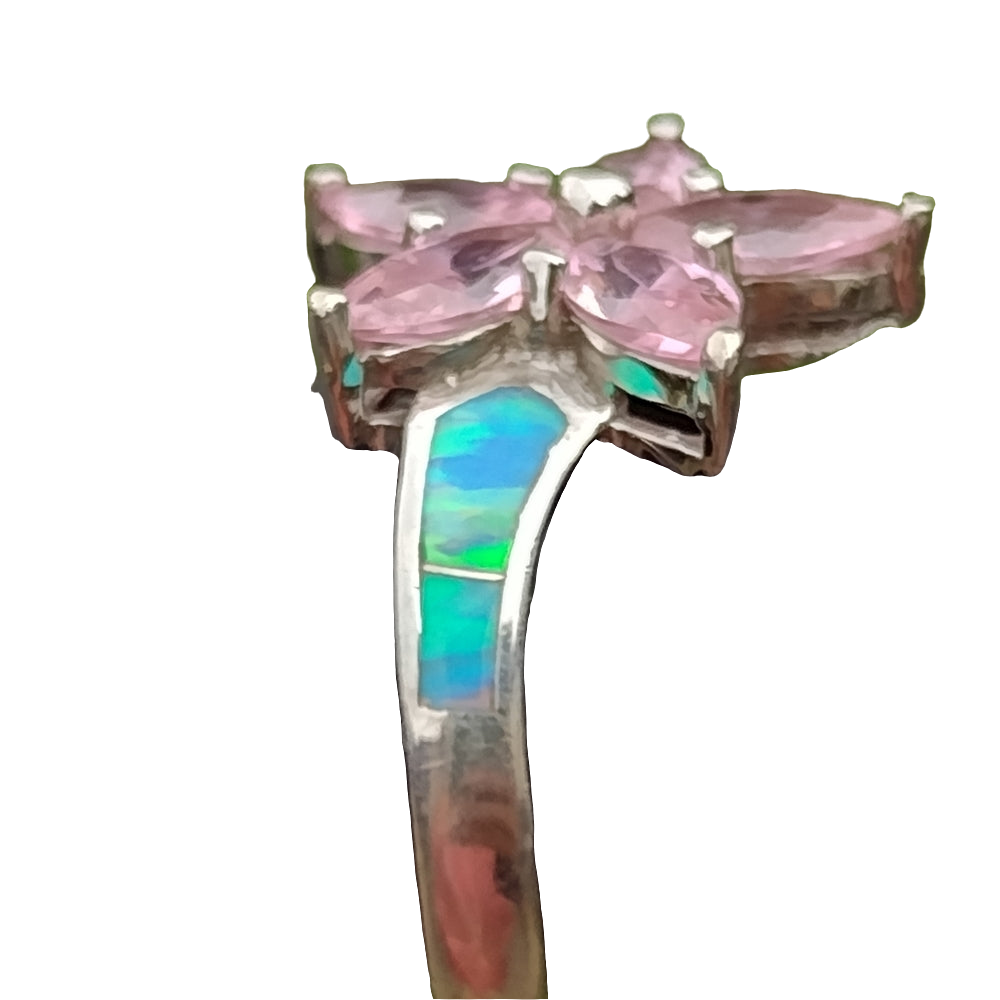 Get ready to shine with this quirky AK opal and pinkstones ring! Made of high-quality sterling silver, this size 8 ring is sure to make a statement. With its delicate opal and pinkstones details, it's the perfect accessory for any occasion. Stand out from the crowd with this playful and unique piece.