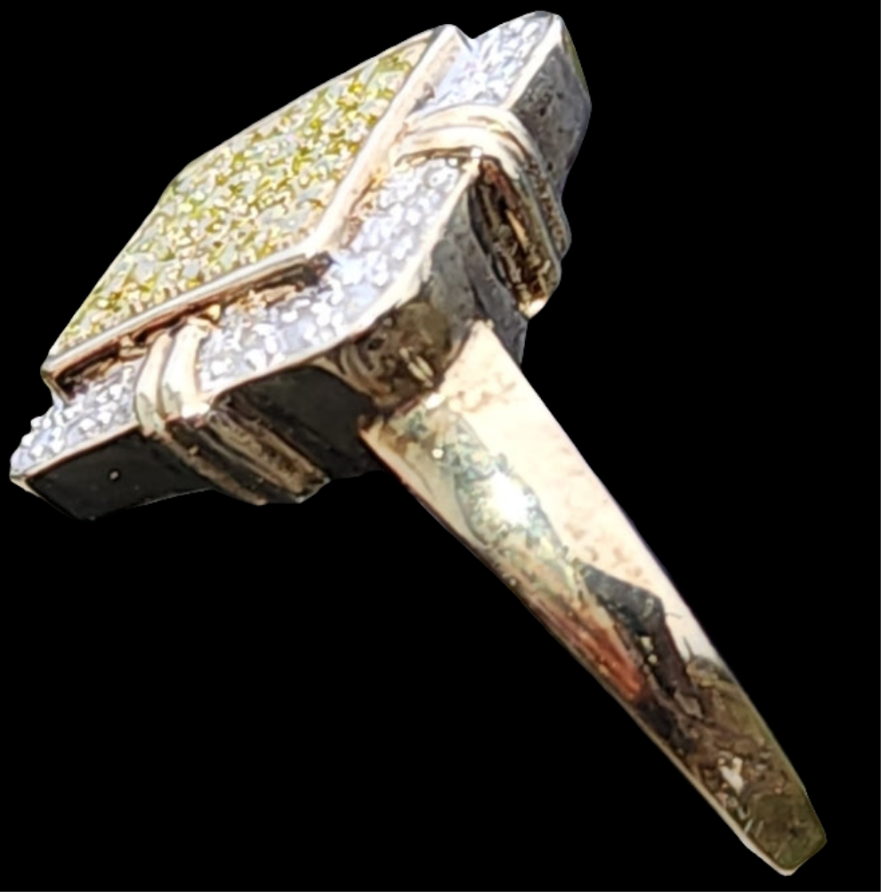 Sterling silver ring with white and yellow diamonds size 6.5