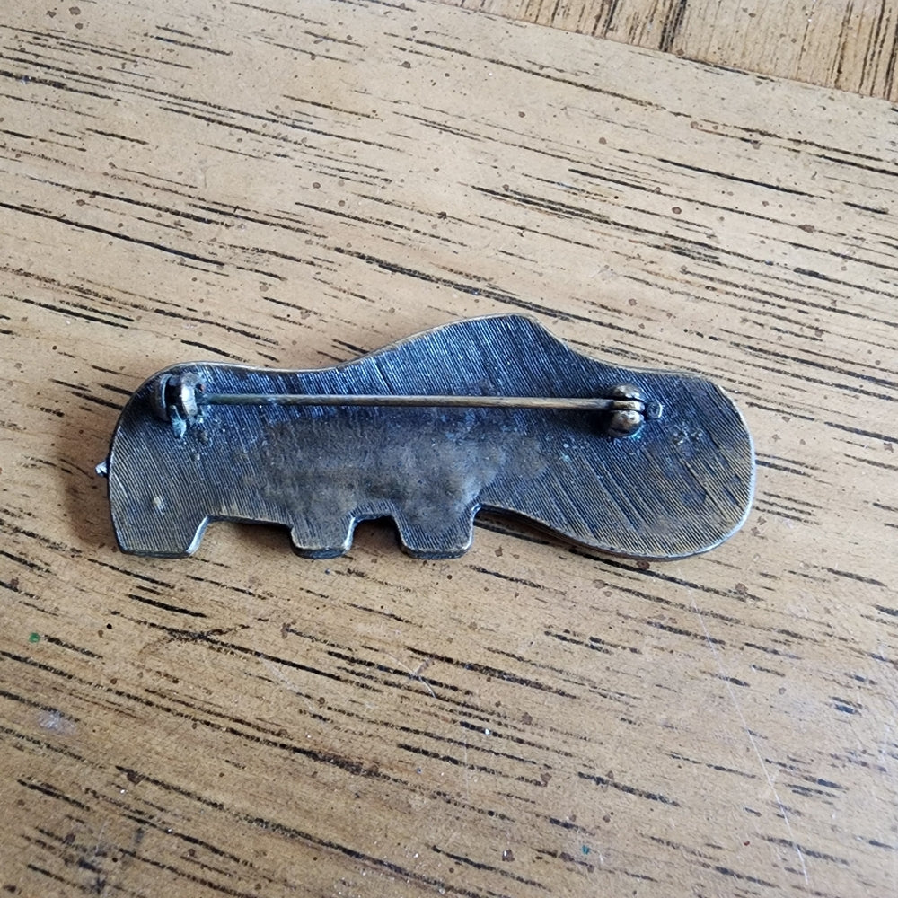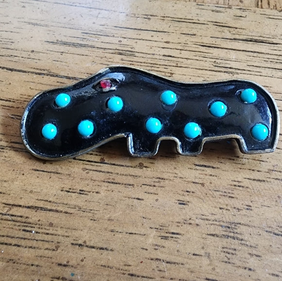 Turquoise color stones black enamel hippopotamus hippo brooch scarf pin jewelry