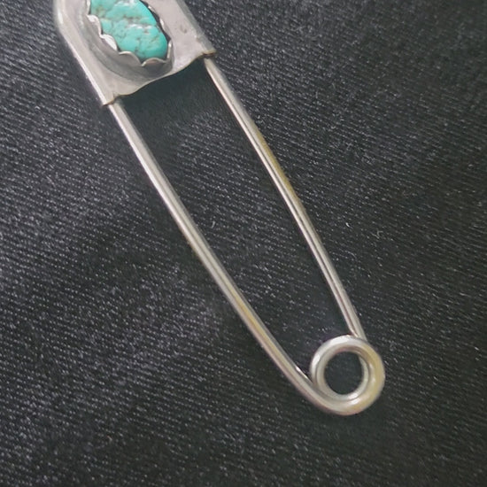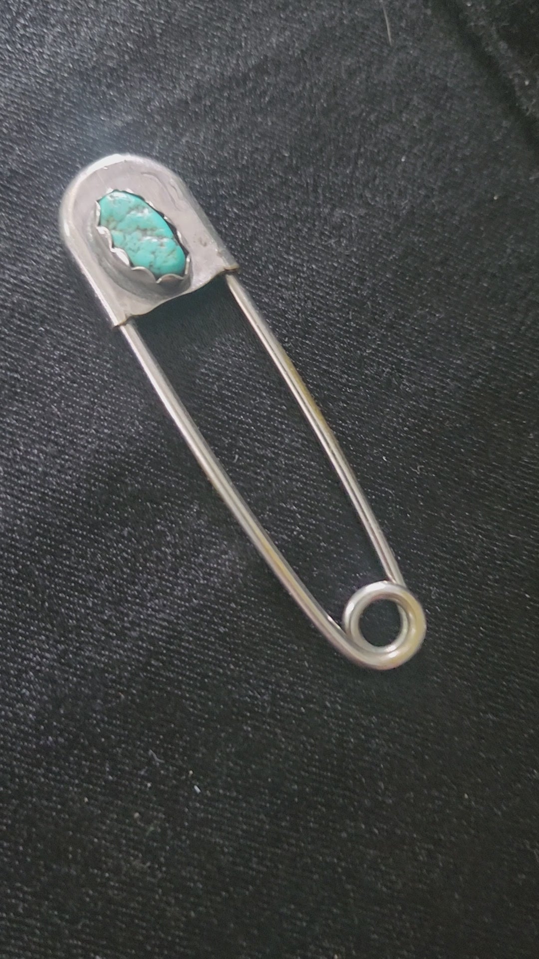 Turquoise Native American jumbo Shawl key Safety pin Vintage Jewelry