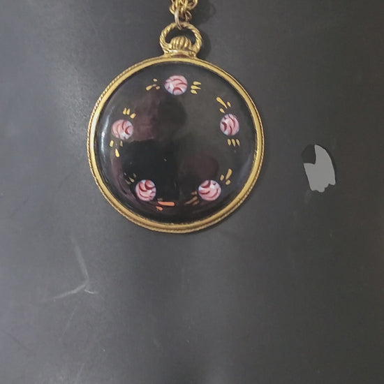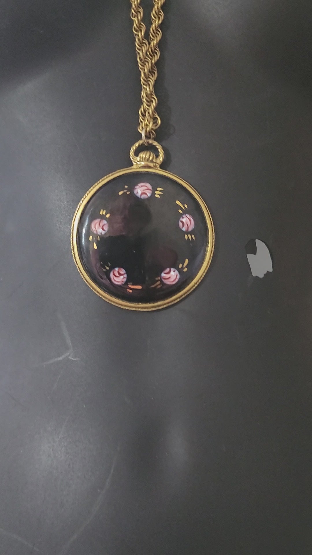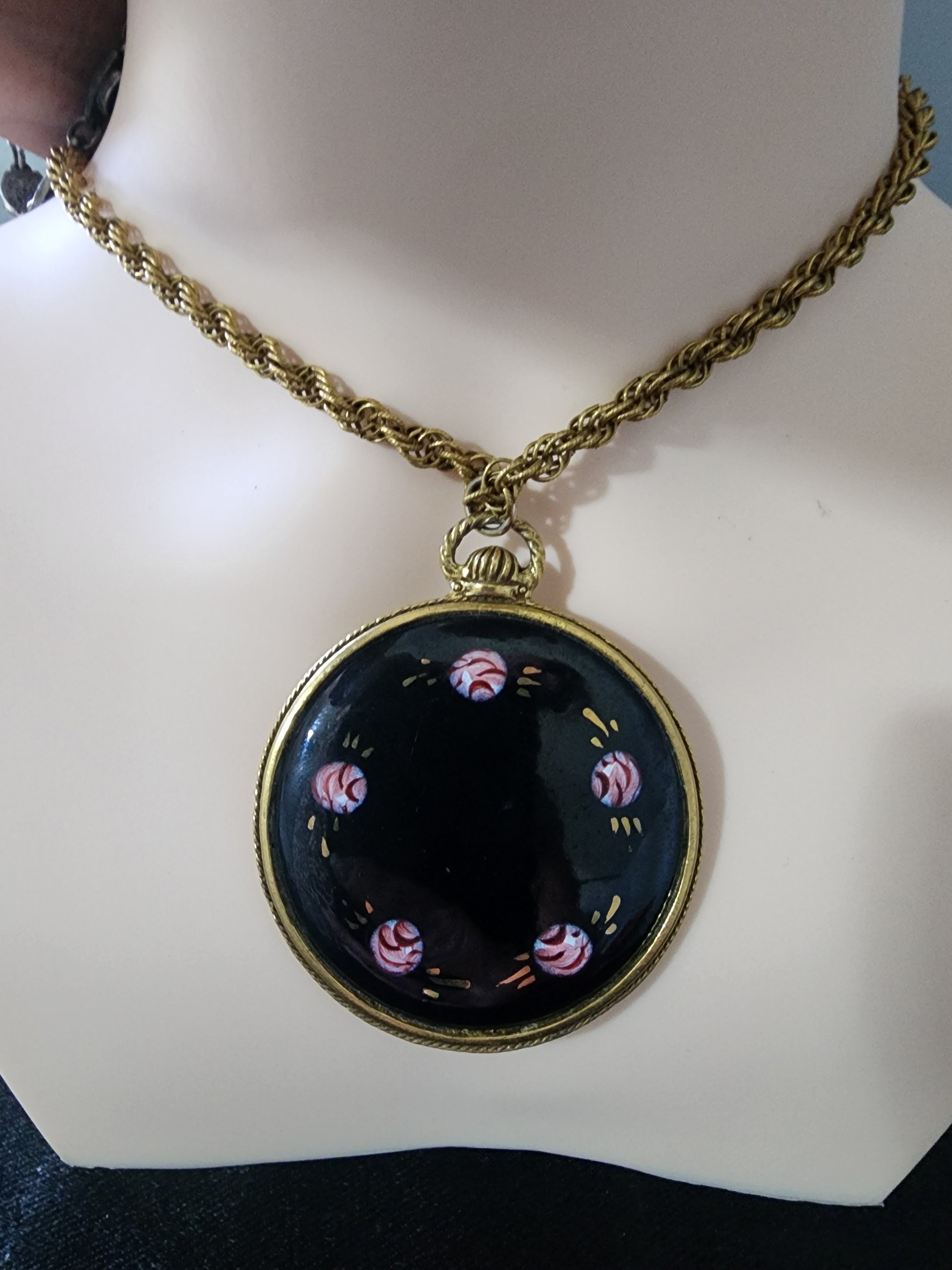 Big Enamel pendant necklace with flowers 1/20 14k GF