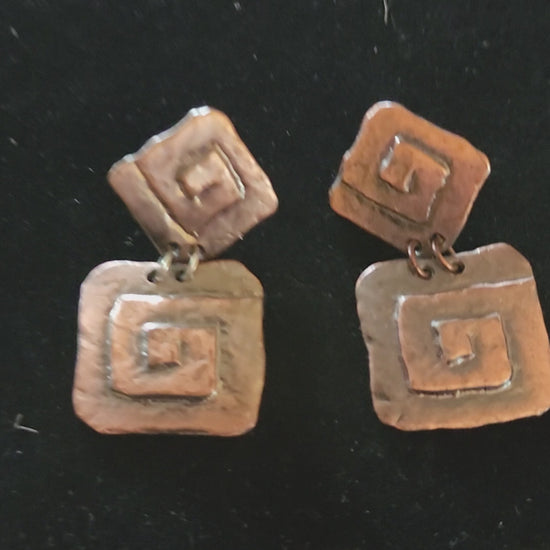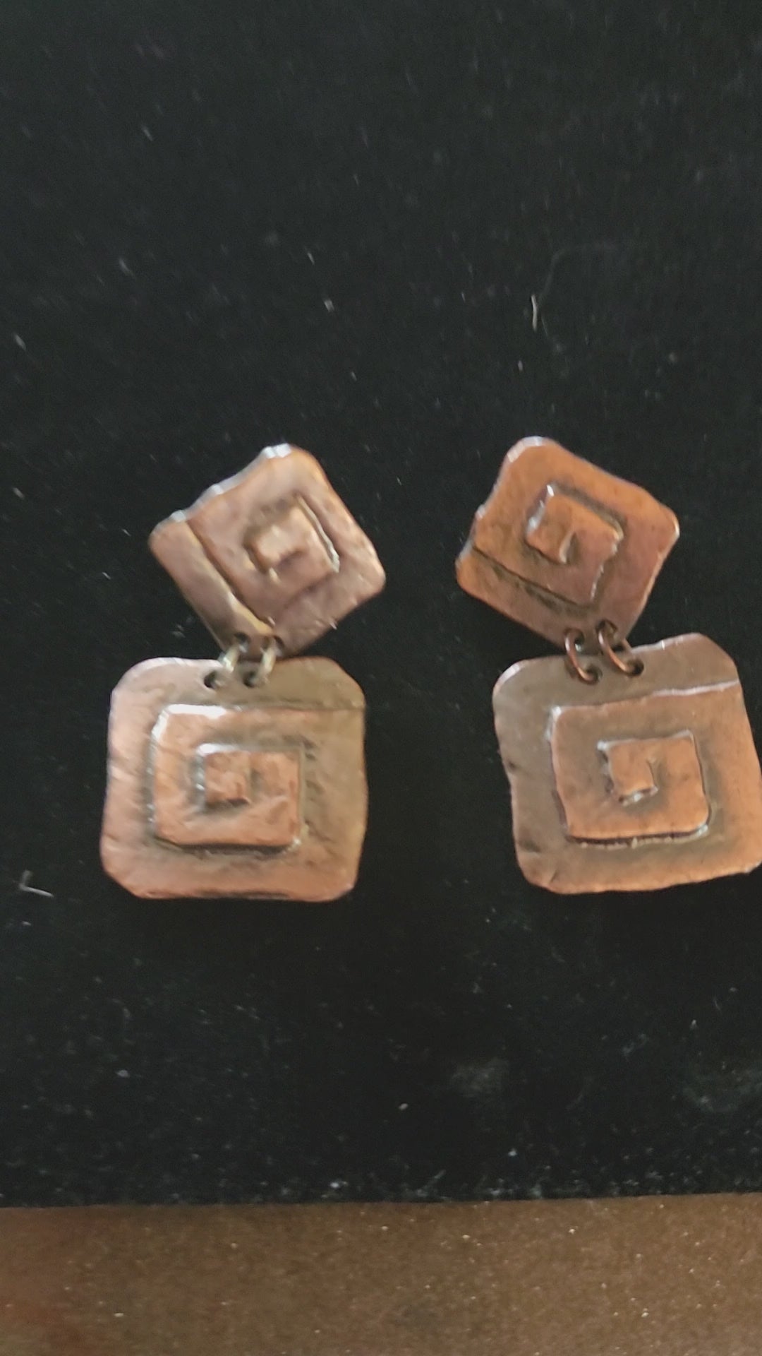 Add a touch of vintage charm to your outfit with these unique JJ Jonette bronze brutalist dangle pierced earrings. The bold, bronze brutalist design will make a statement while adding a touch of playful quirkiness to your style. Perfect for those who love to stand out from the crowd.