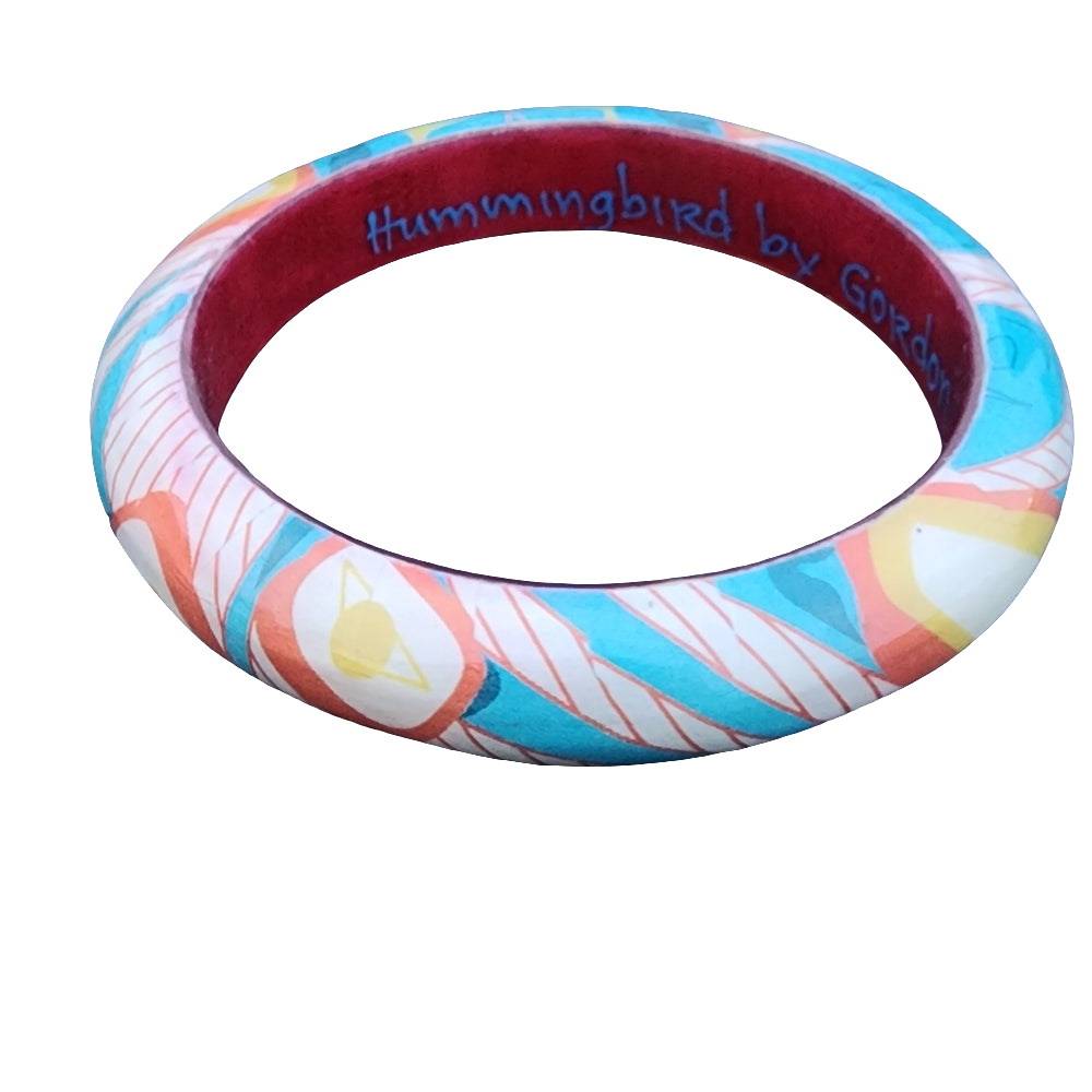 Vintage Native Haida wooden Bracelet by Artist Gordon White Retro Hummingbird