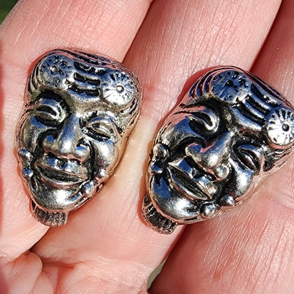 Vintage sterling silver figural face Mens cufflinks whimsical jewelry