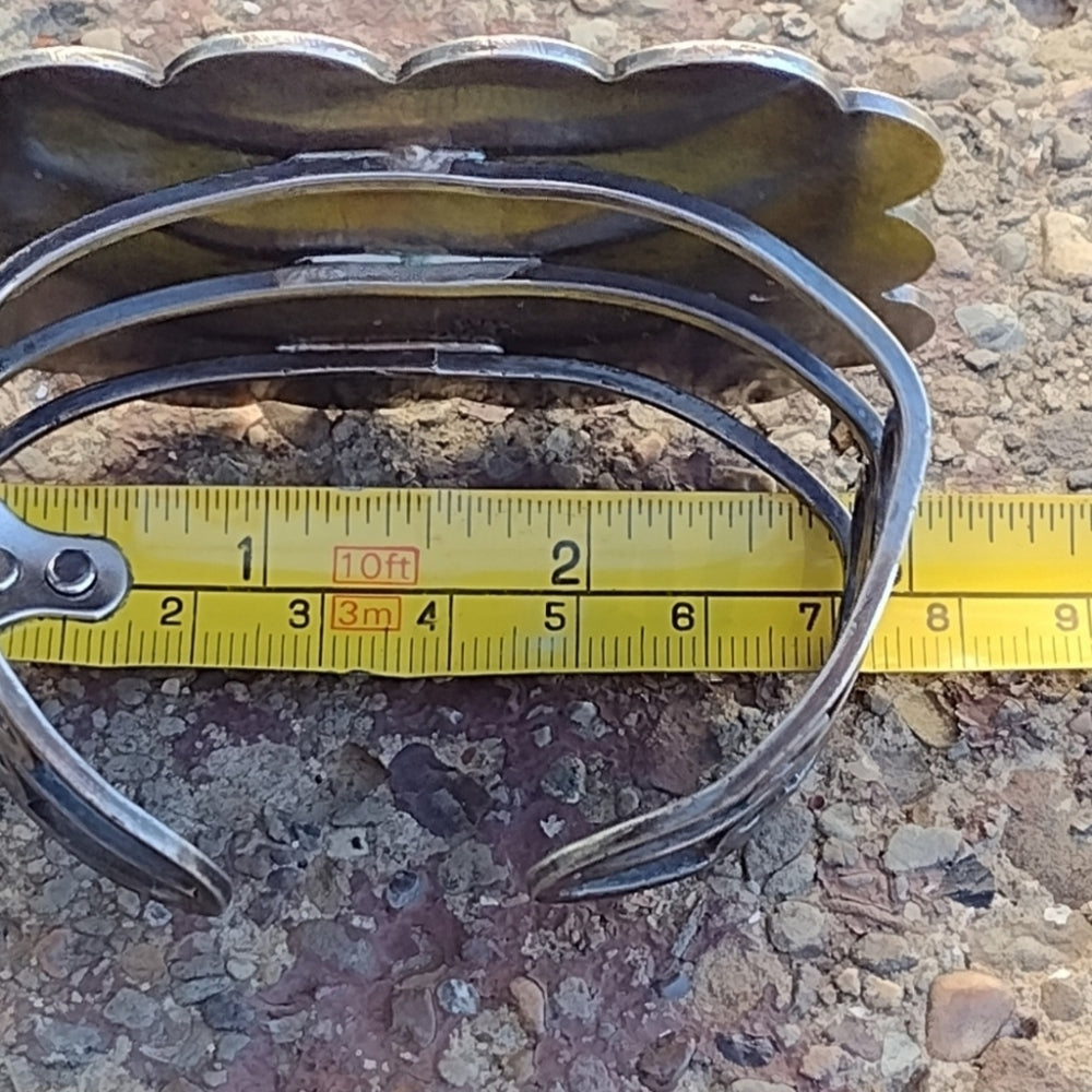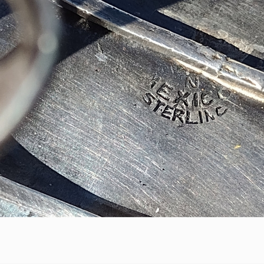 Expertly crafted from sterling silver, this beautiful cuff bracelet showcases a stunning green Aztec face design. Handmade in Mexico, this unique piece of jewelry is a timeless addition to any collection. With its intricate detailing and high-quality materials, this bracelet is sure to make a statement wherever you wear it.with an Aztec face. measurements are in the photos boxA