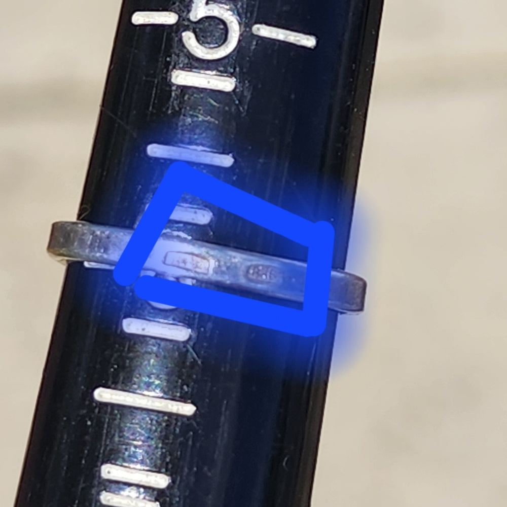 you are getting a nice sterling silver ring it is not from America so the markings are different it's actually on the band but tested and guaranteed to be sterling silver size 6 if you have any questions just ask thank you have a great day