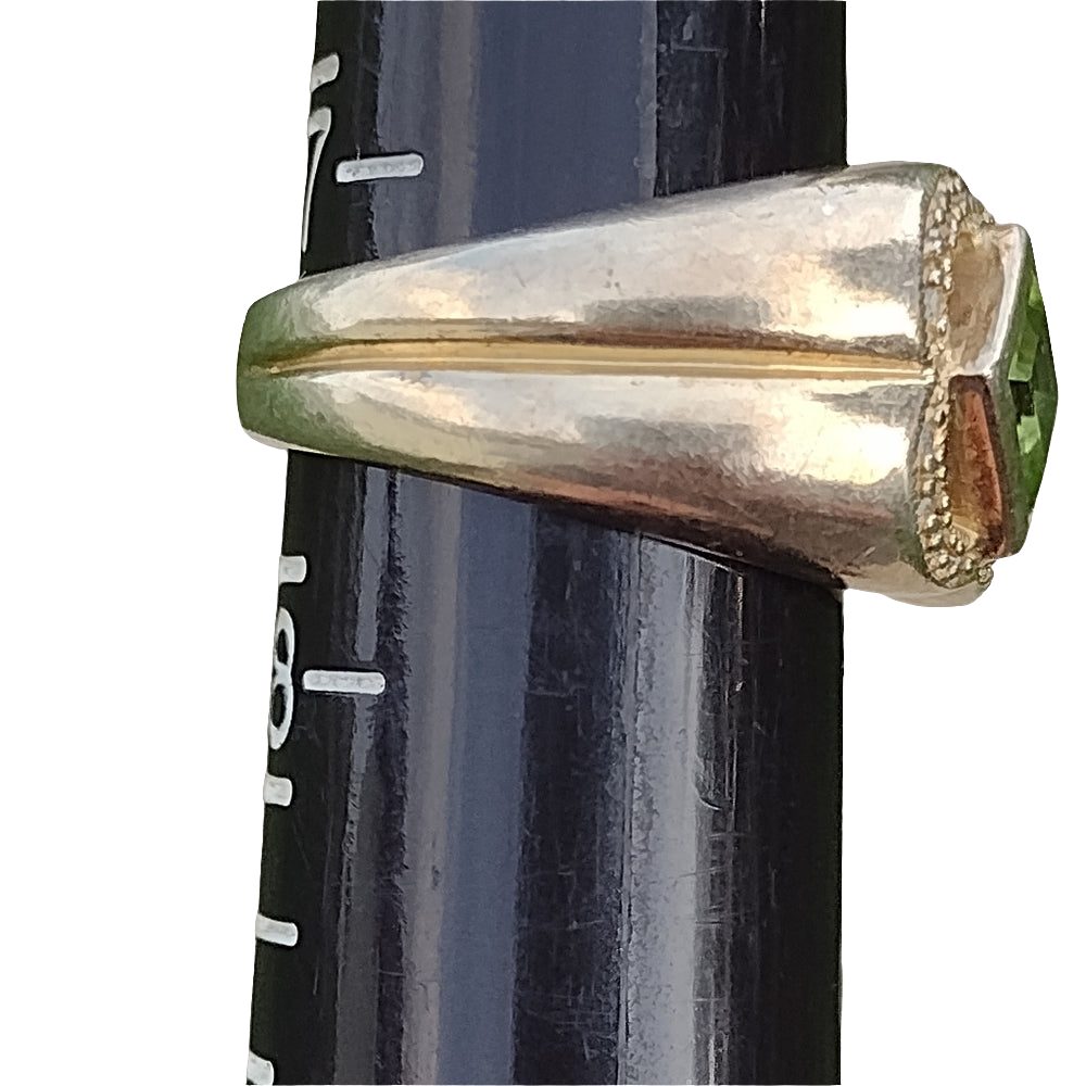 Vintage sterling silver ring with gold vermili size 7.25 green stone
